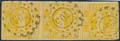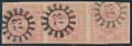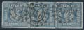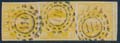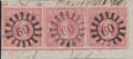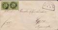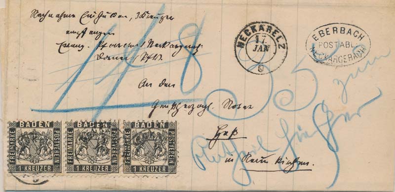 1 Kr. Wappen Ausg. 1862 im waager. 3er Streifen als MeF auf Bf. ab Neckarelz (K2) u. nebenges. Postablage "EBERBACH/NECKARGERACH" |