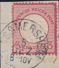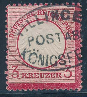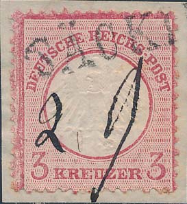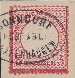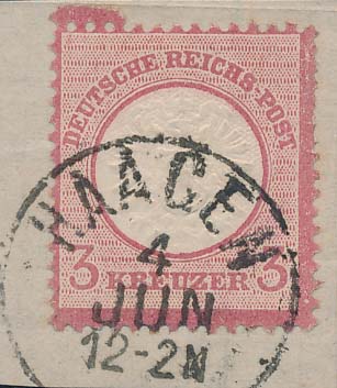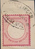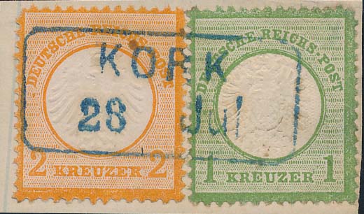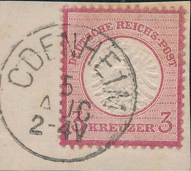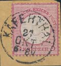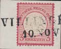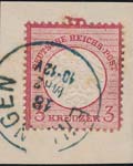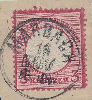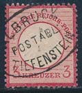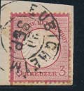 "232" offen zentrisch glasklar auf Bf. mit breitrandiger (4 Schnittlinien!) 3 Kr. Ziffer blau u. nebenges. HKS "KAISERSLAUTERN" nach Saarbrücken |