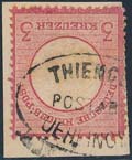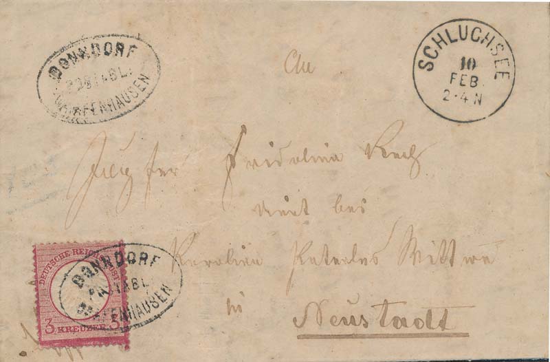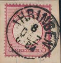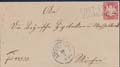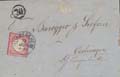 "68" offen zentrisch glasklar auf Bf. mit breitrandiger 3 Kr. Ziffer rot vom r. Bogenrand u. nebenges. HKS "BURGKUNSTADT" nach Erfurt |