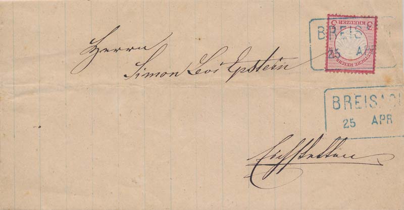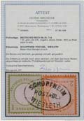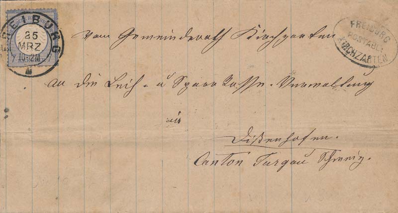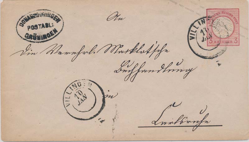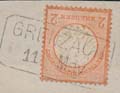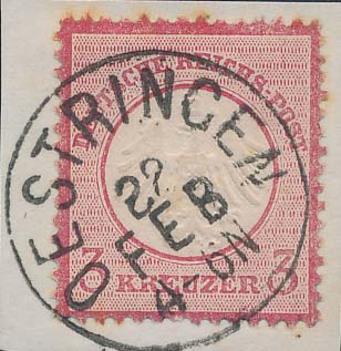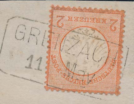 "170" offen zentrisch glasklar auf Bf. mit voll bis breitrandiger 6 Kr. Ziffer braun u. nebenges. HKS "GRUNSTADT" nach Langensteinach sign. HK |