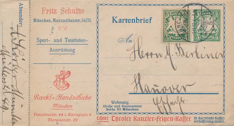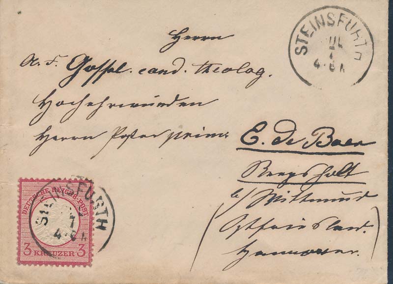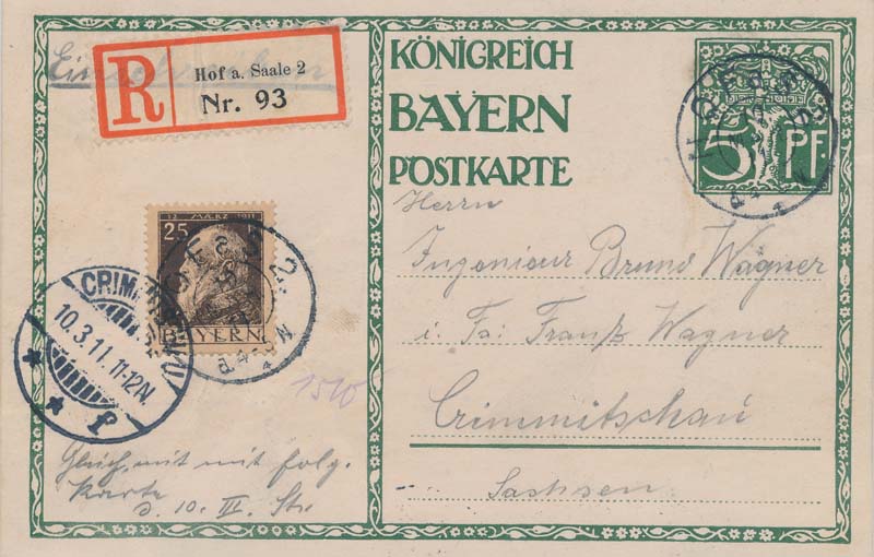 "537" ideal auf Bf. mit breitrandiger 3 Kr. Ziffer blau u. nebenges. HKS "UNTERSTEINACH" nach Gefrees |