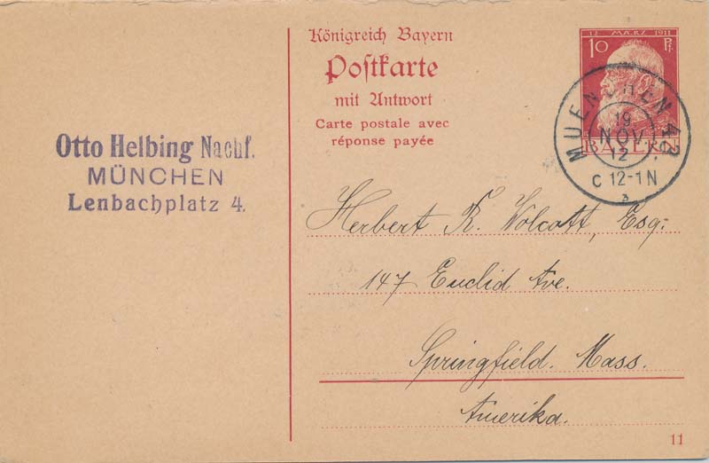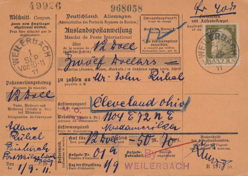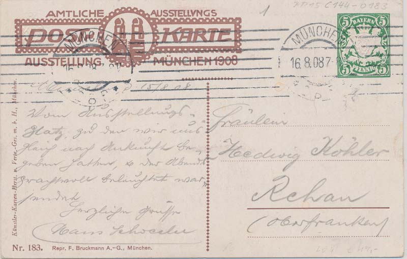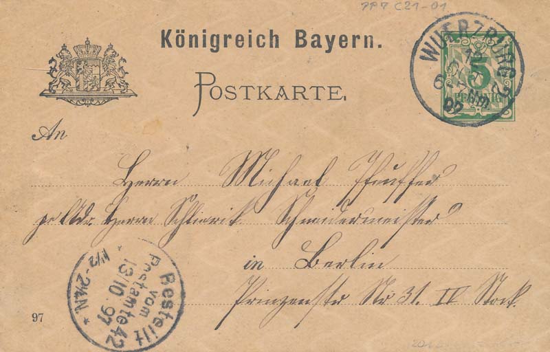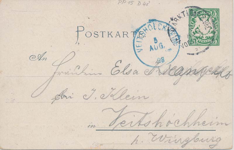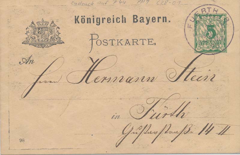 "528" zentrisch glasklar auf Bf. mit l. etwas knapper sonst breitrandiger 3 Kr. Ziffer blau u. nebenges. HKS "WIESENTHEID" nach Bamberg |