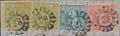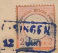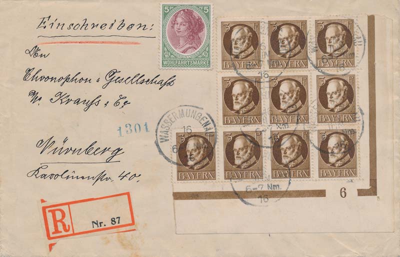 "355" zentrisch glasklar auf Bf. mit unten noch voll sonst 3 Seiten riesenrandig mit 5 Nachbarn! 3 Kr. Ziffer blau u. nebenges. HKS "UFFENHEIM" nach Obernbreit |