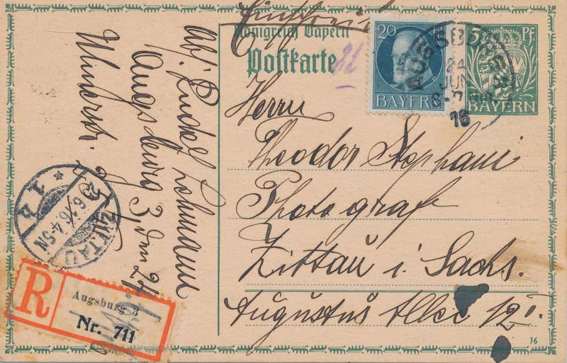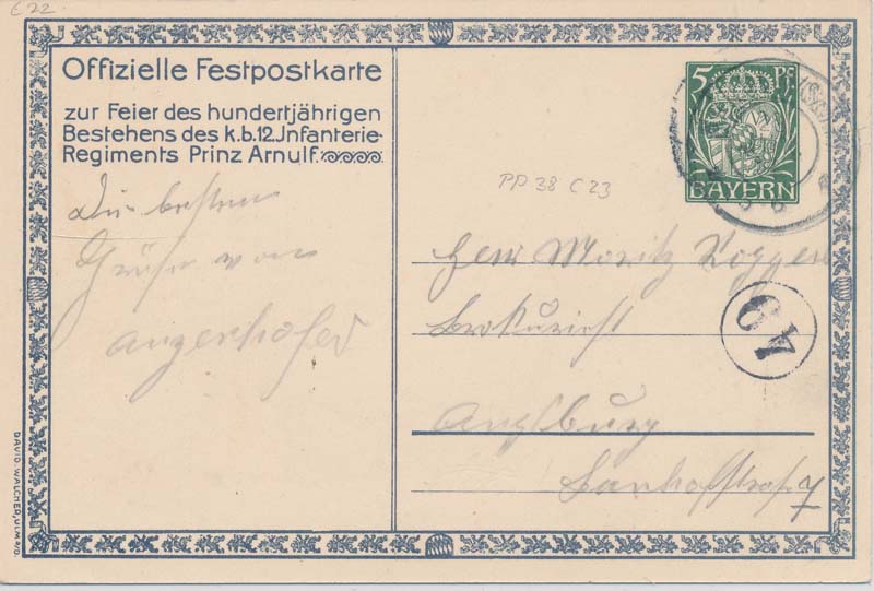 "345" zentrisch glasklar auf Bf. mit breitrandiger 3 Kr. Ziffer blau u. nebenges. HKS "NEU-OETTING" nach Mühldorf tadellos! |