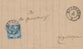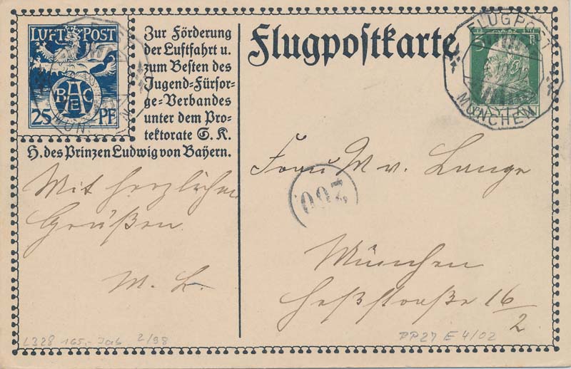 "442" zentrisch glasklar auf Bf. mit breitrandiger 3 Kr. Ziffer blau u. nebenges. HKS "PRIEN" nach Mühldorf |