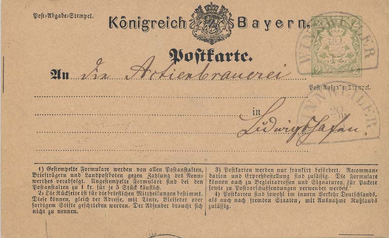 "WINNWEILER" HKS glasklar auf GA-Karte 2 Kr. Wappen nach Ludwigshafen |
