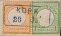 3 u. 6 Kr. Ziffer Ausg. 1853 zusammen auf Bf. mit Nr.-Stpl. "59" u. nebenges. Ra2 "HEITERSHEIM" nach Heidelberg. Die 3 Kr breitrandig, die 6 Kr unten angeschnitten mini Fleckchen gepr. Stegmüller |