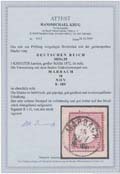30 Kr. Wappen Ausg. 1862 allseits gut gez. senkr. leichte Druckspur mehrfach sign. u. doppelt gepr. Englert |