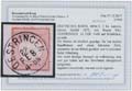"614" offen zentrisch glasklar auf Bf. mit breitrandiger 3 Kr. Ziffer rot vom Unterrand mit nebenges. HKS "METTEN" nach Siegenburg gepr. Sem |