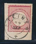 "327" glasklar auf Bf. mit breitrandiger (3 Schnittlinien) 3 Kr. Ziffer blau u. nebenges. HKS "STAFFELSTEIN" nach Nürnberg |