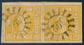 3 Kr. Ziffer Ausg. 1851 "a"-Farbe 2 St. je voll bis breitrandig (waren auf Bf. wohl als Paar geklebt!) mit 1 zentrischen Nr.-Stpl. "43" Pracht gepr. Flemming |