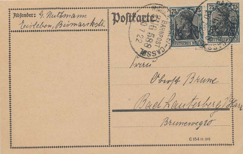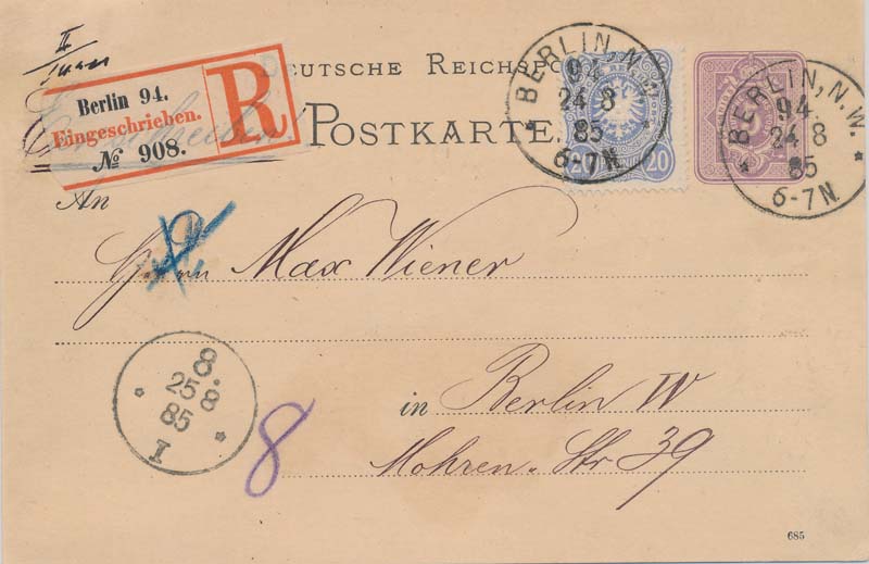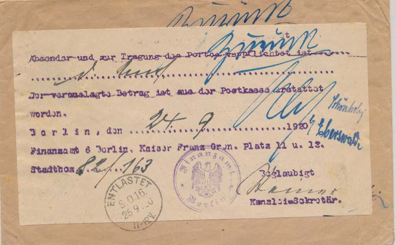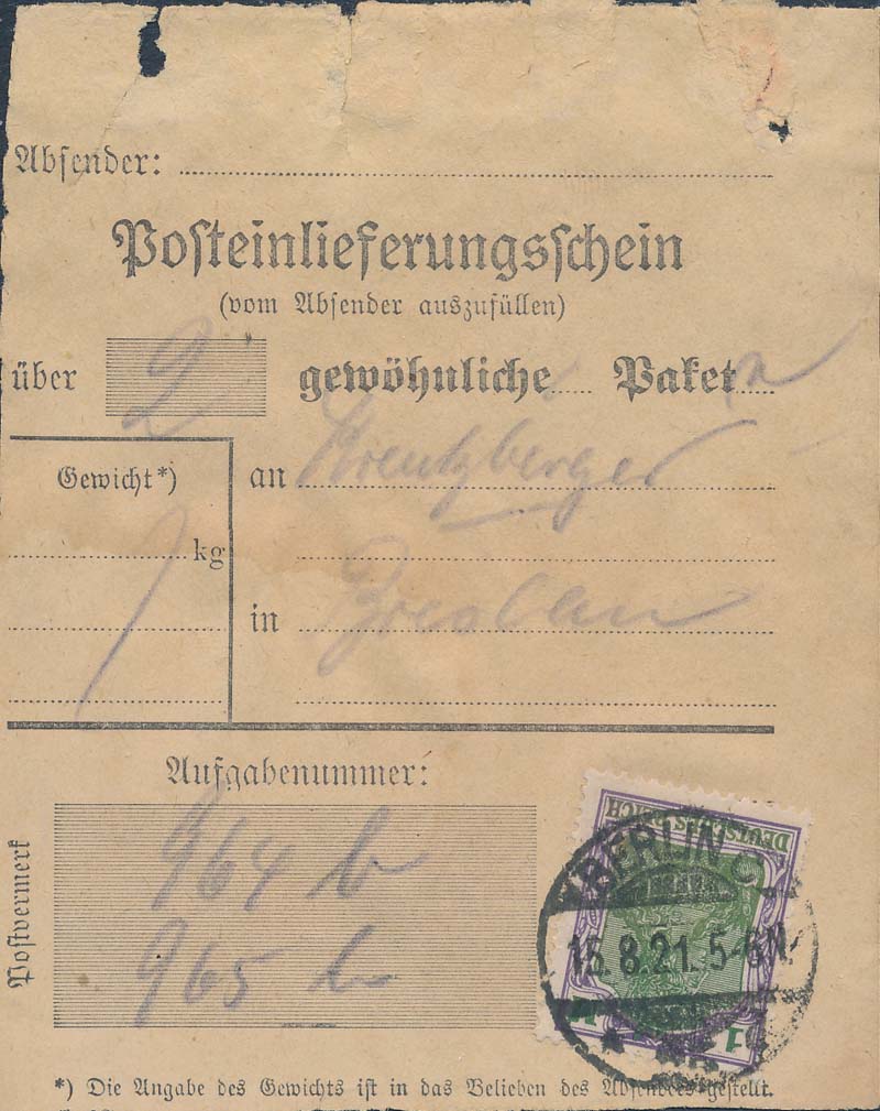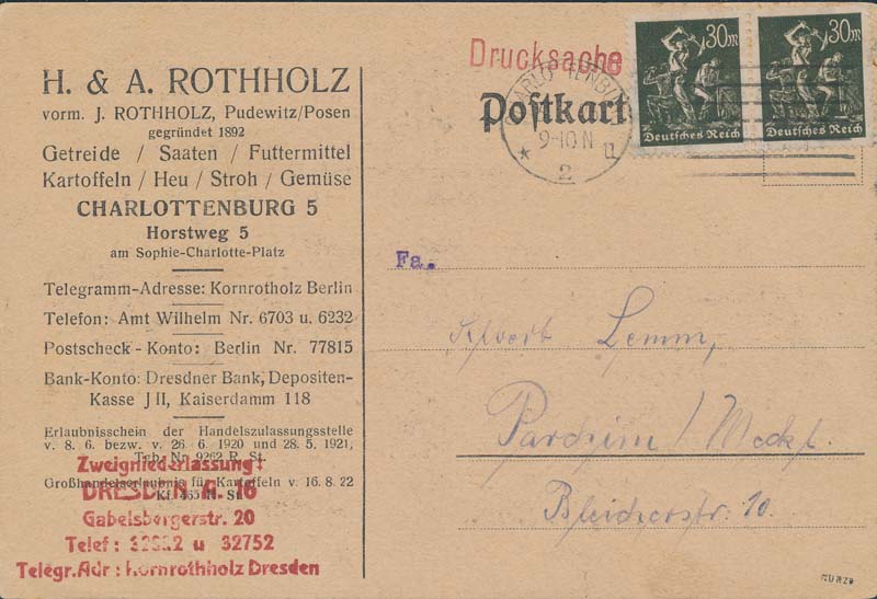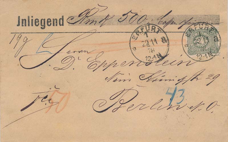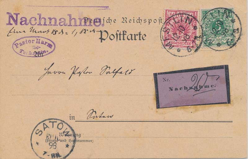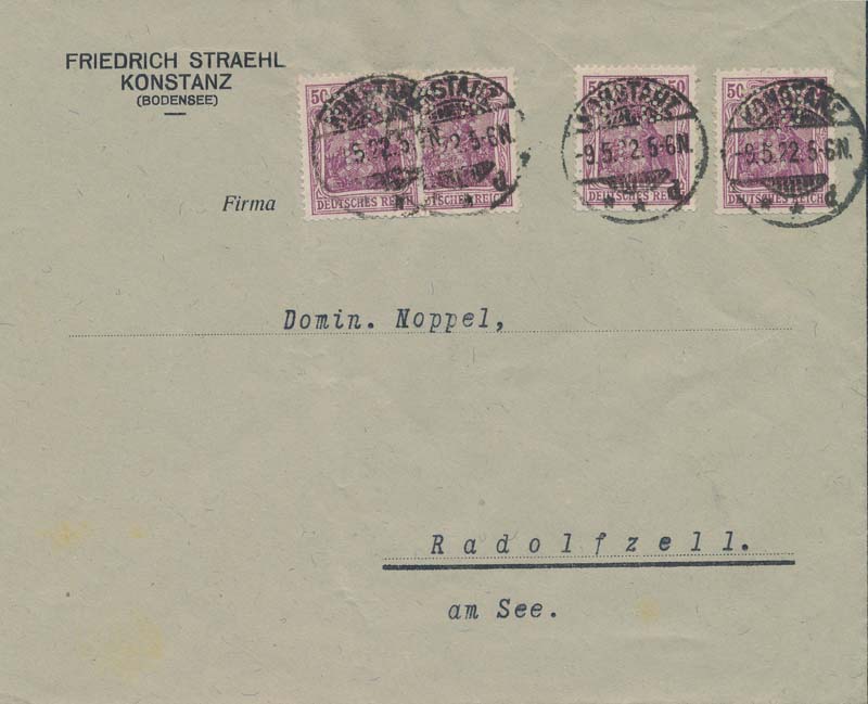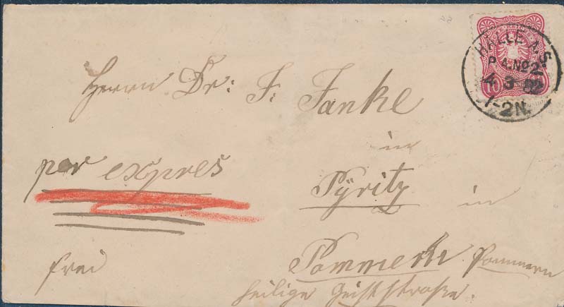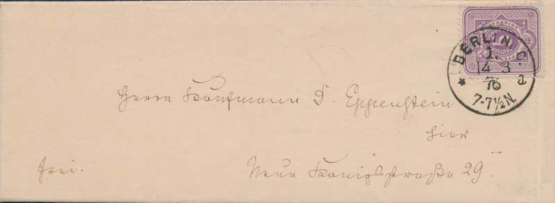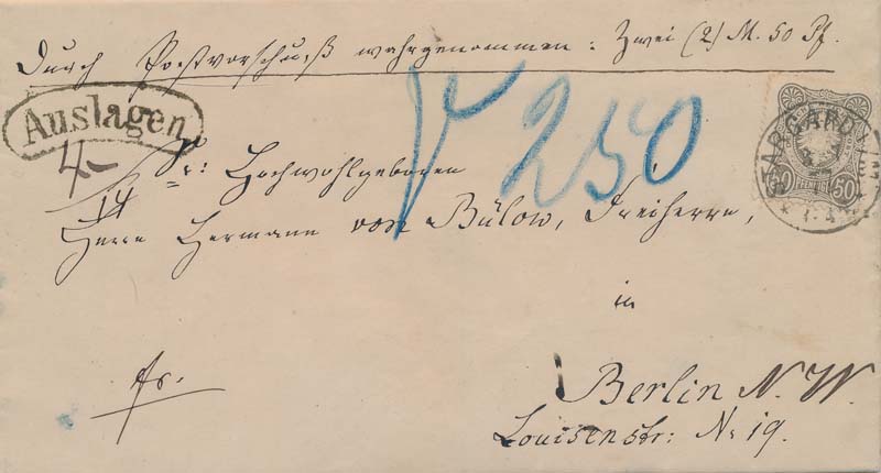 50 Pfe. als EF auf Auslagenbf. ab Stargard vom 3.7.77 nach Berlin sehr sauber gepr. Jäschke-L. |