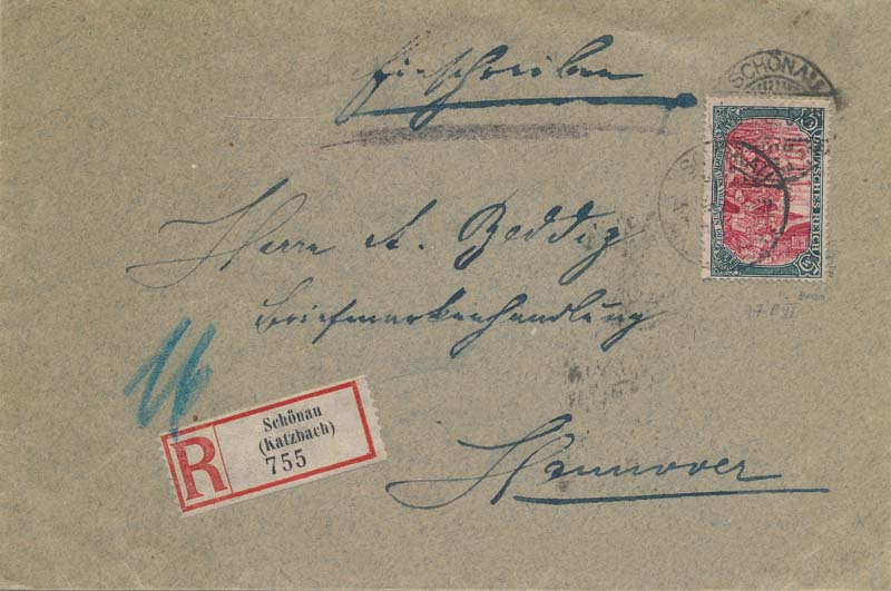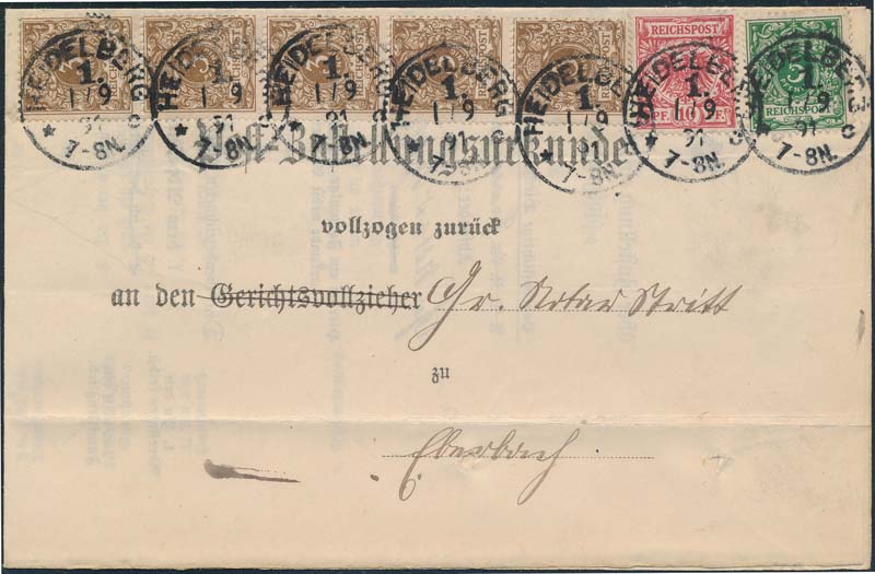 5(2) u. 25 Pfe "c"-Farbe zusammen auf NN-Bf. ab Schwarzenfels (Ra3) vom 13.11.78 nach Schlüchtern. Die 25 Pf. tadellos! bei den 5 Pfe einmal etwas eckrund gepr. Jäschke-L. |