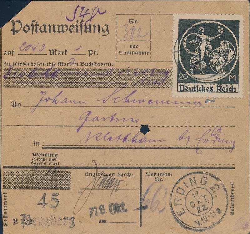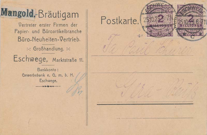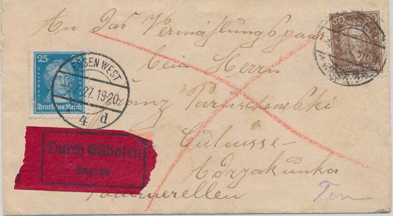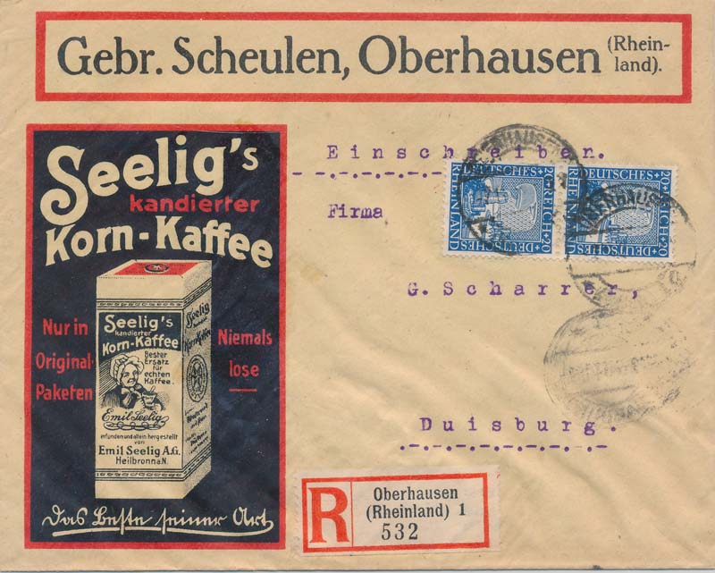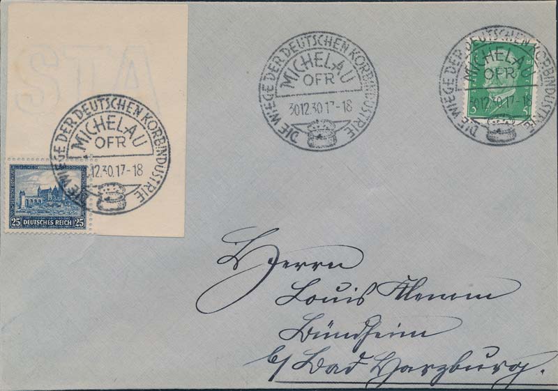 25 Pf. Marke aus IPOSTA-Block sowie 5 Pf. Präsidenten zusammen auf Doppelbf. ab Michelau vom 30.12.30, Umschlag etwas verkleinert |