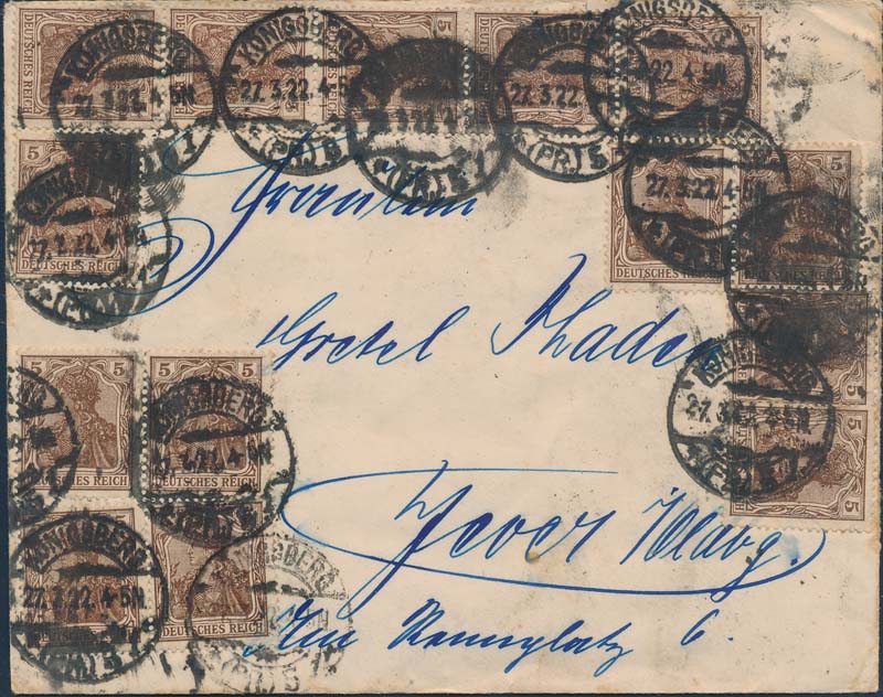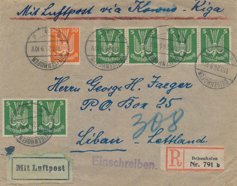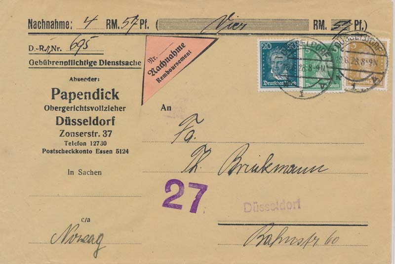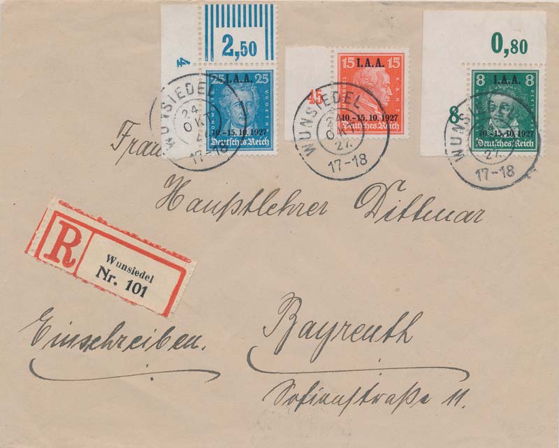 15(4), 25(8) u. 50 Pf. Nothilfe 1931 zusammen auf Lp-R-Überseebf. bis 60gr. mit Rückschein, 5 Pf. zuviel aber tolle Massenfrankatur! |