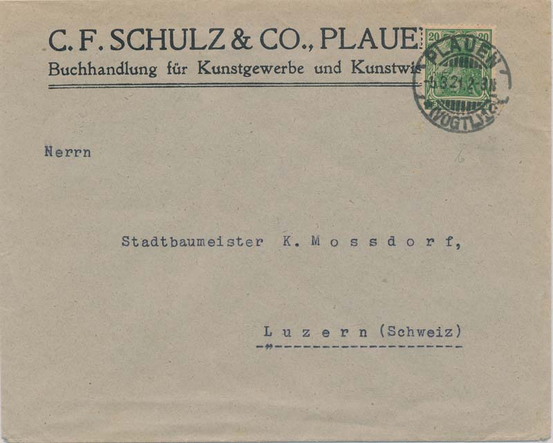 12 Pf. Präsidenten Erg.-Wert 1932 l. obere Bogenecke im Walzendruck 2/9/2 als EF auf Bf. ab Dessau vom 20.8.33 nach Osnabrück |