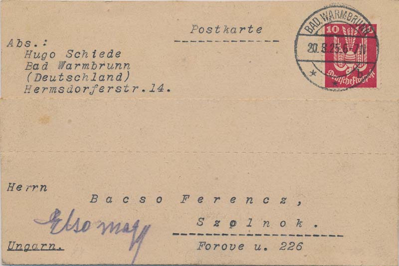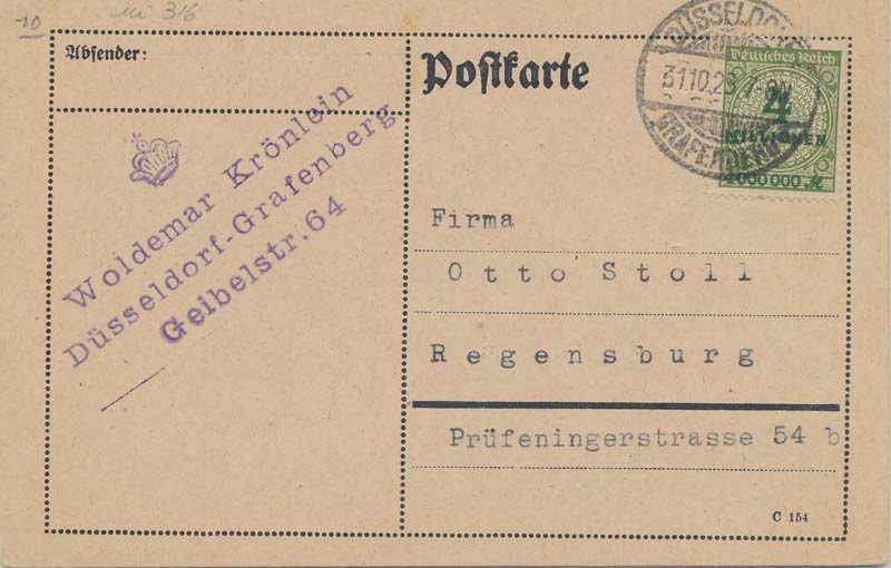 8 Pf. Marke aus IPOSTA-Block als EF auf PK ab Alsfeld vom 24.11.30 nach Dortmund gute EF! |