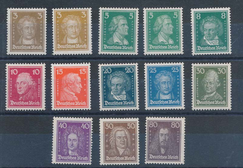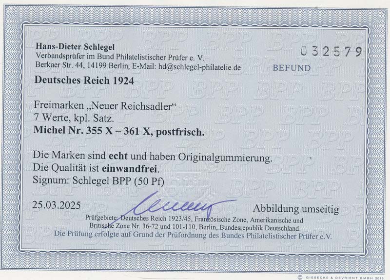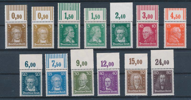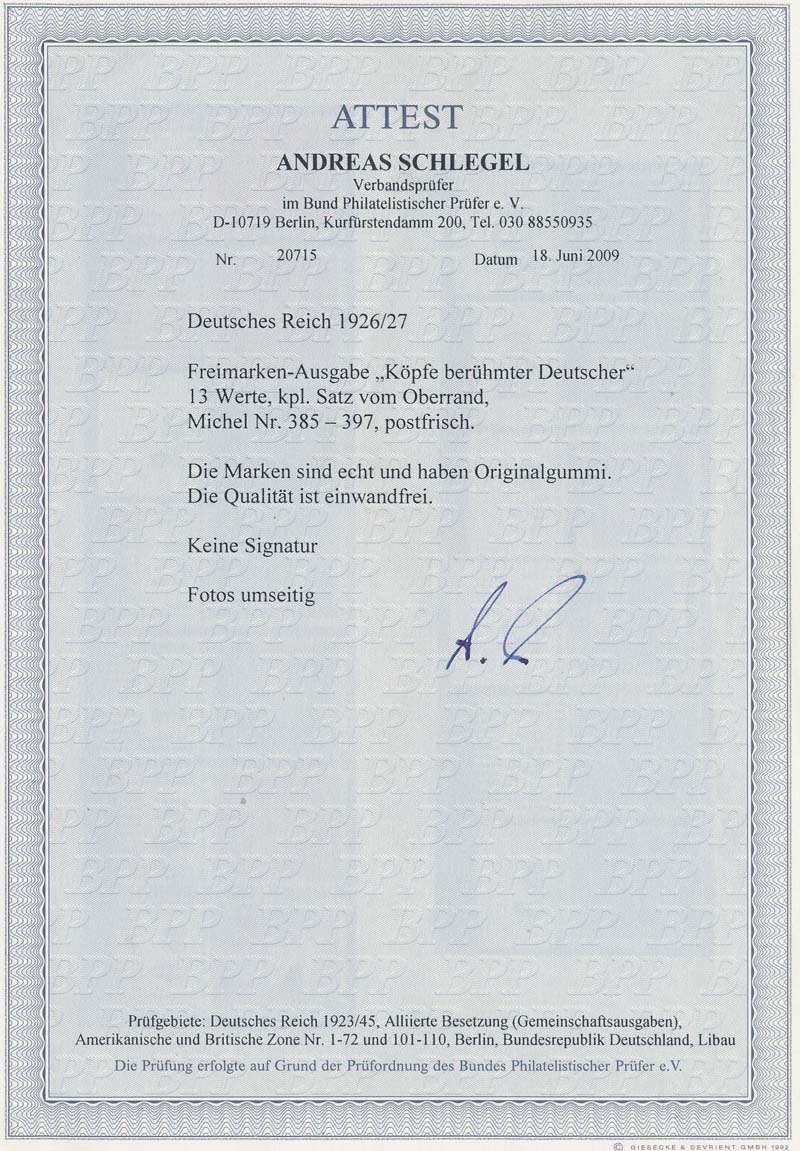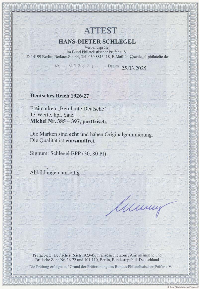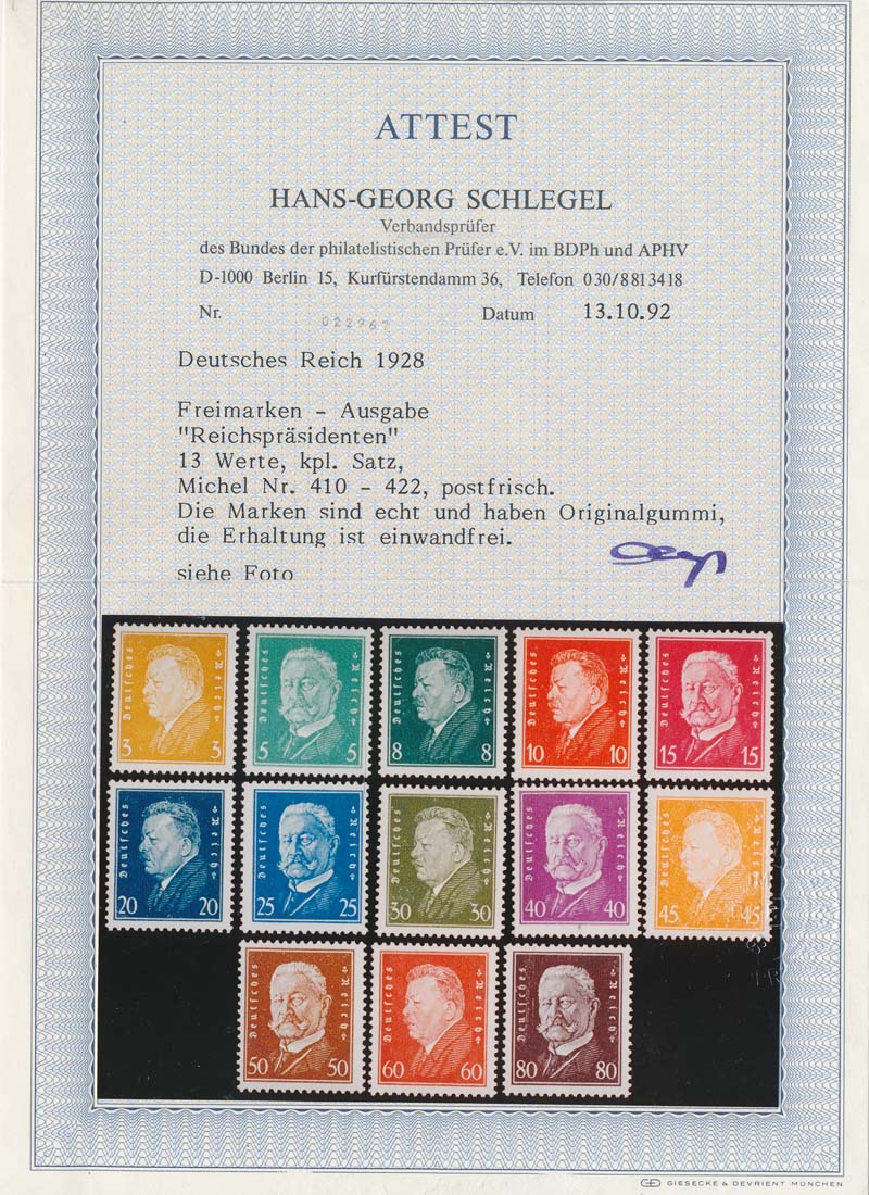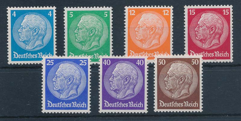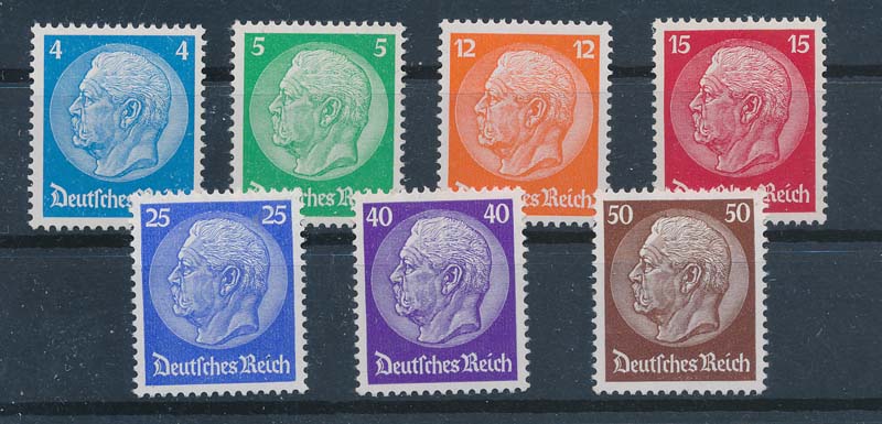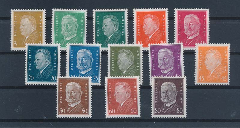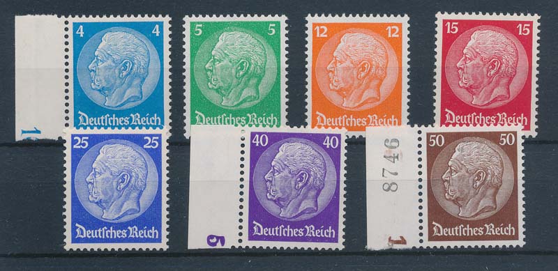 Hindenburg 1932 postfrischer Prachtsatz, dabei die 4, 40 u. 50 Pf. je vom l. Bogenrand mit Randnr. 40 Pf. gepr. Schlegel D. |