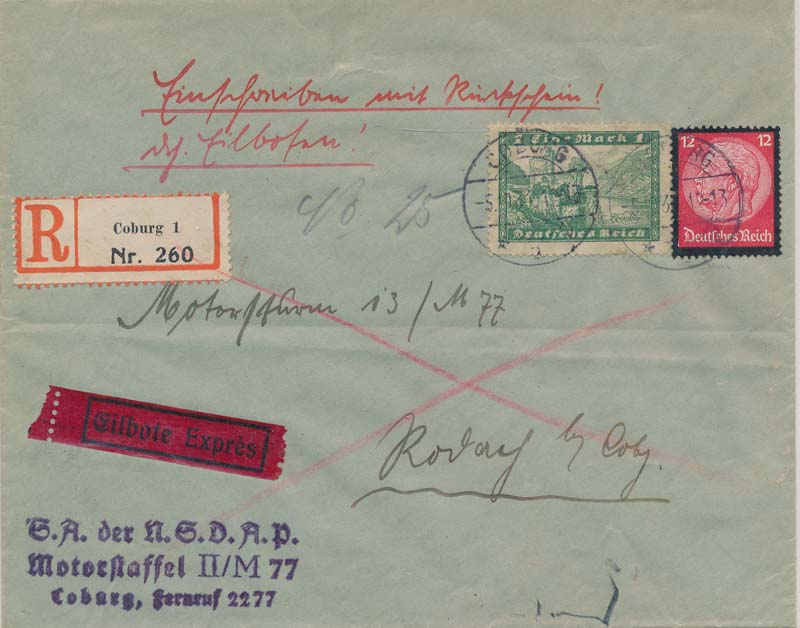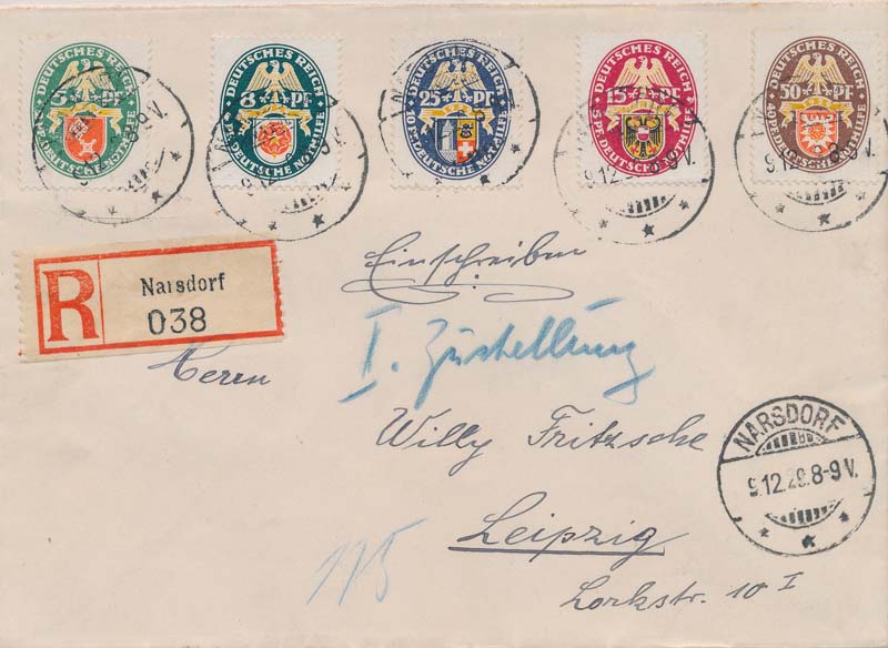 Nothilfe 1932 kpl. auf R-Bf. ab Stuttgart vom 9.1.33 nach Bruchsal |