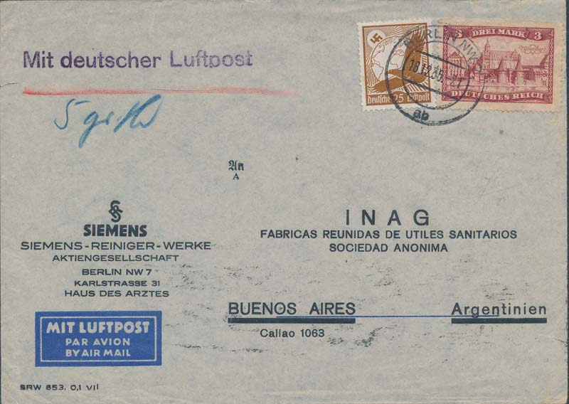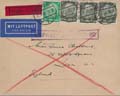 5 u. 3 mal 30 Pf. Hindenburg je Wz 2 zusammen auf Lp-Auslands-Eilbf. ab Berlin vom 12.5.33 nach England teils etwas unebene Zähnung |