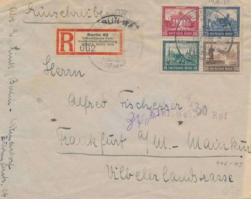 Herzstück aus IPOSTA-Block auf R-Bf. ab Ausstellung vom 14.9.30 nach Frankfurt/M. |