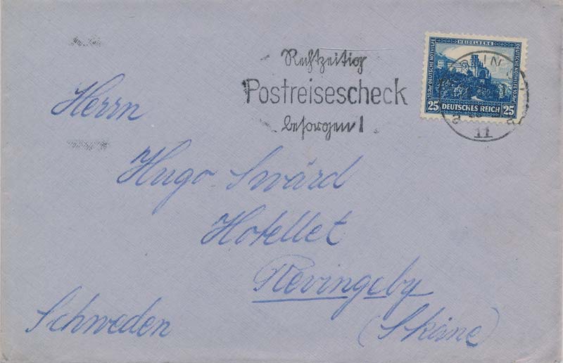 25 Pf. Nothilfe 1931 als EF auf Auslandsbf. ab Berlin v. 24.11.31 nach Schweden |