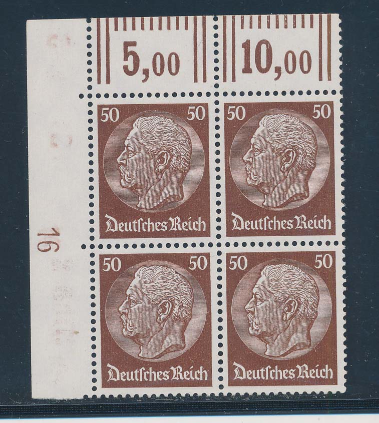 50 Pf. Hindenburg 1932 im l. obere Bogenecke postfrisch Pracht |