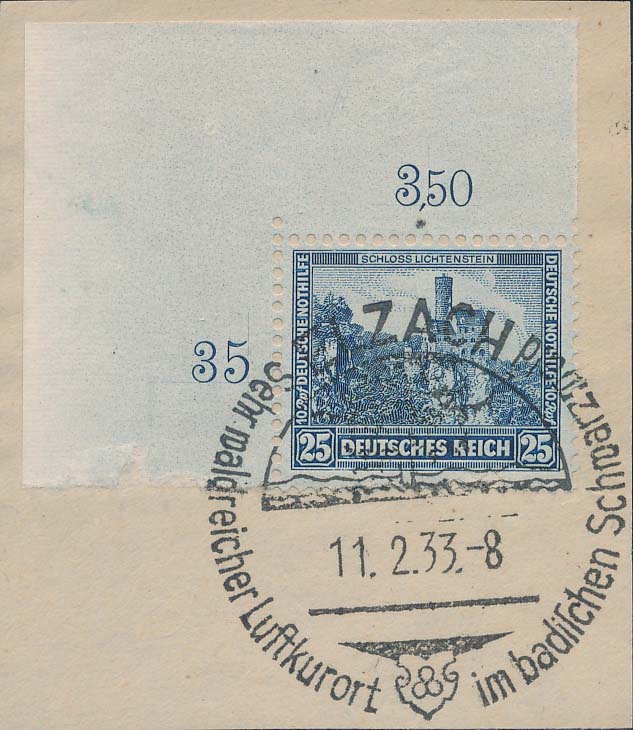 25 Pf. Nothilfe 1932 l. obere Bogenecke ideal gestpl. auf Bf.-St. LUXUS! |
