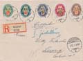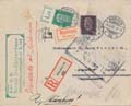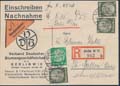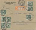 5 u. 3 mal 30 Pf. Hindenburg je Wz 2 zusammen auf Auslands-R-NN-Karte ab Berlin vom 2.2.34 in die Schweiz. Alle Werte mit Fa-Lochung "V.D.B." 1 mal 30 Pf. Einriß |