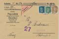 20 u. 50 Pfe sowie 10 Pf zusammen auf Auslands-Paketkarte ab Karlsruhe vom 28.11.80 in die Schweiz |