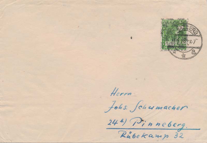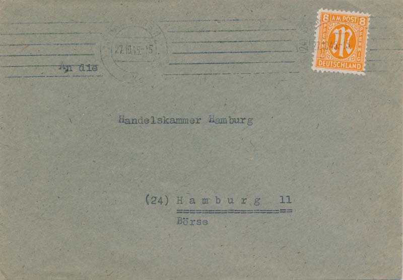 8 Pf. AM-Post dt. Druck als EF auf Ortsbf. von Hamburg vom 27.10.45 |