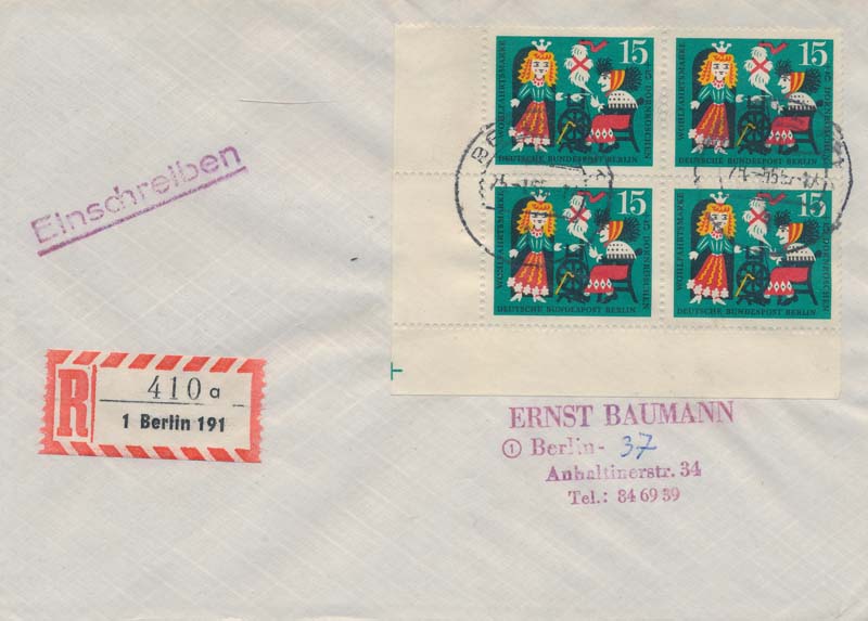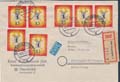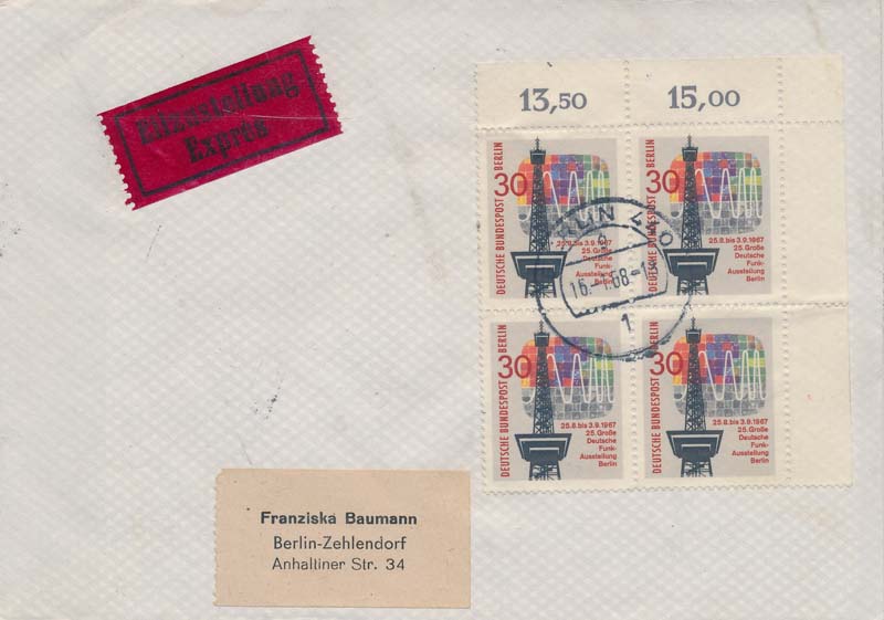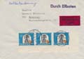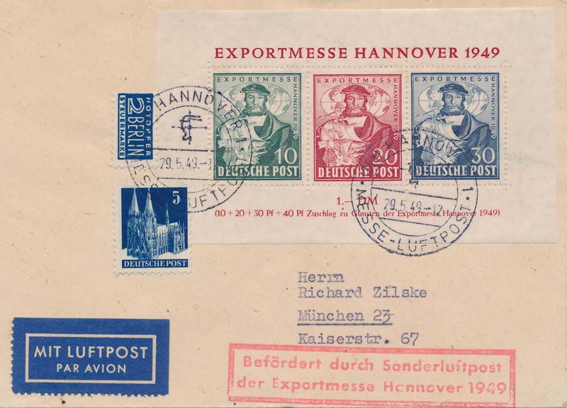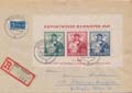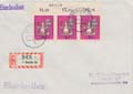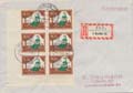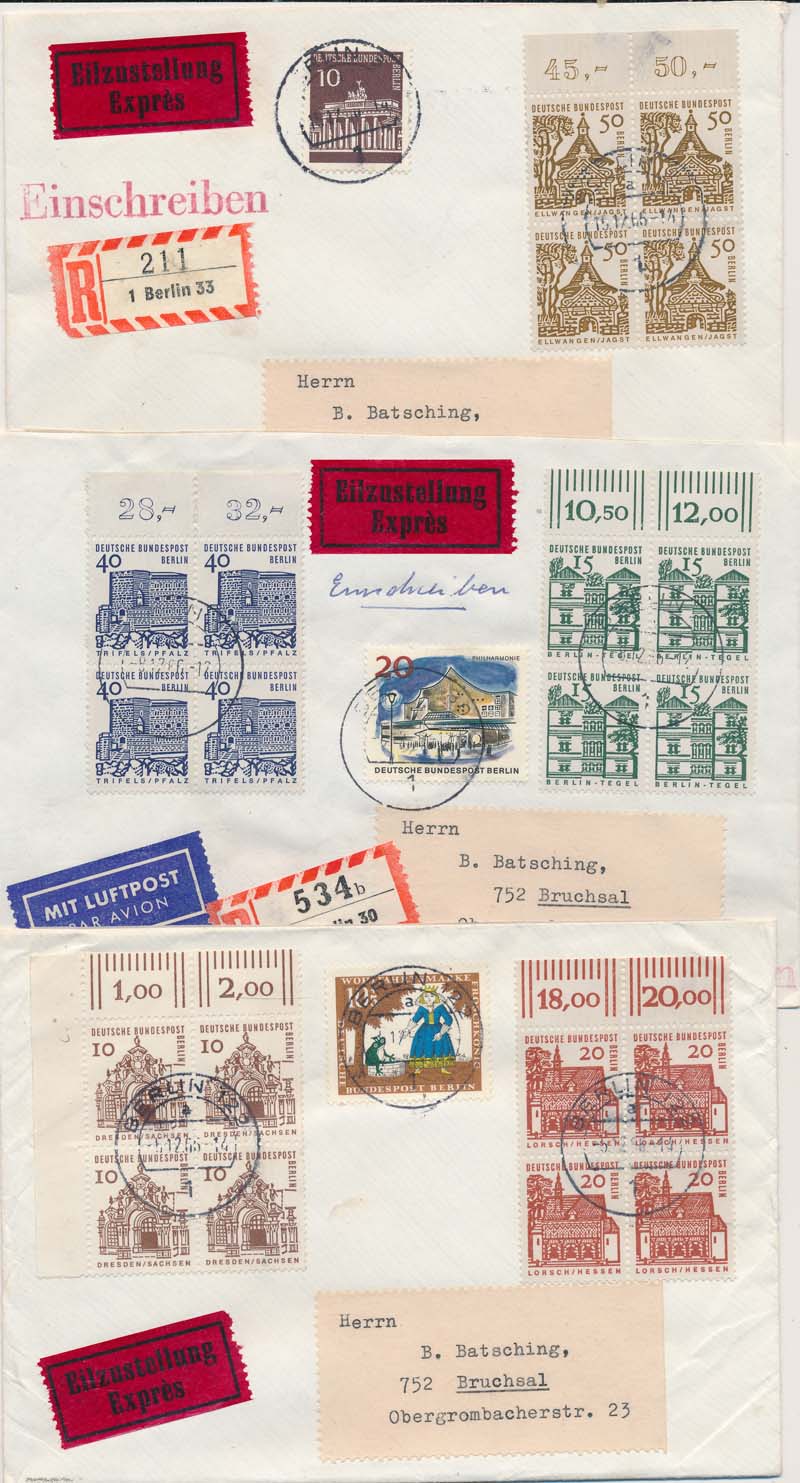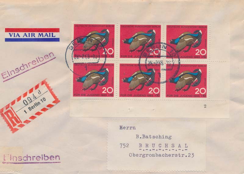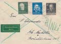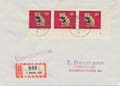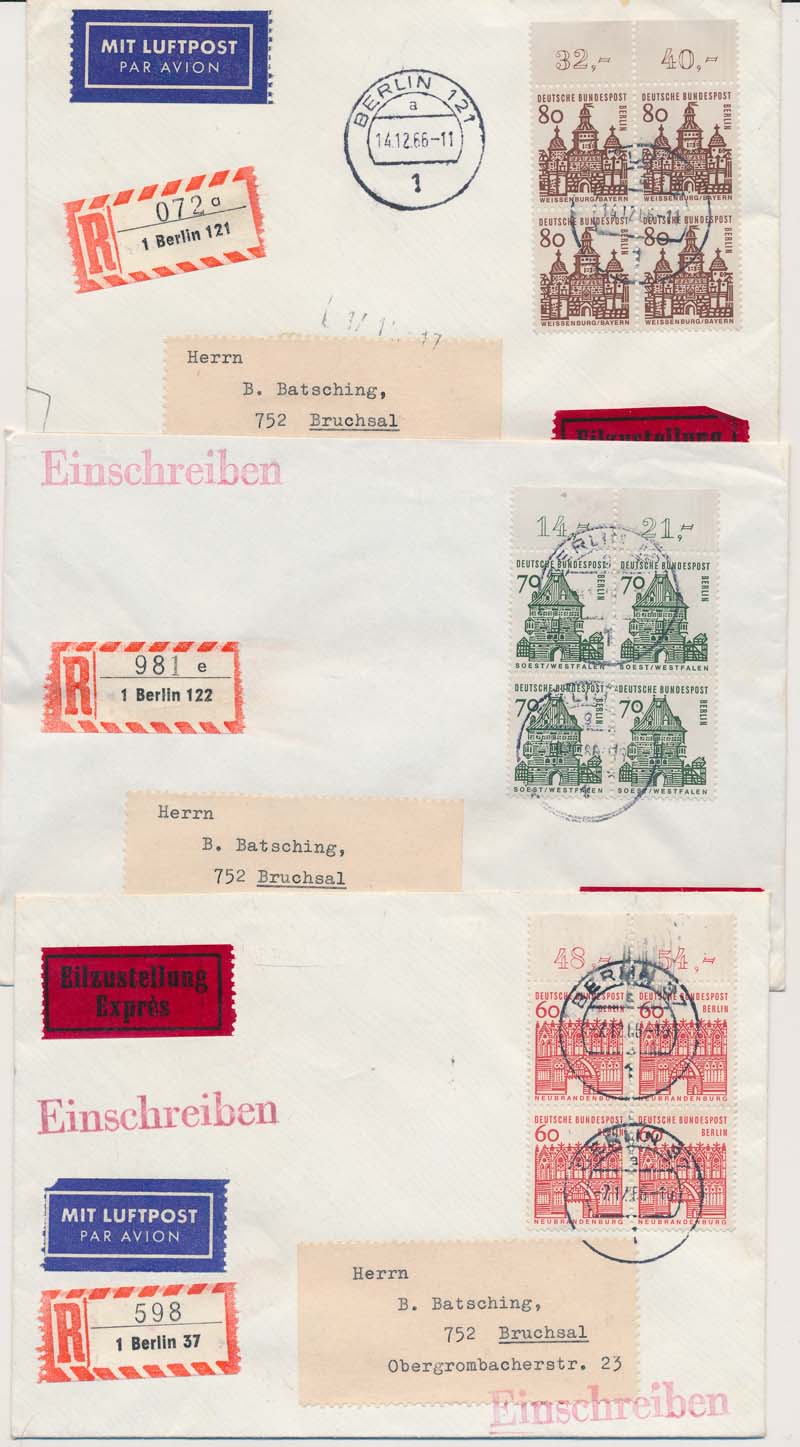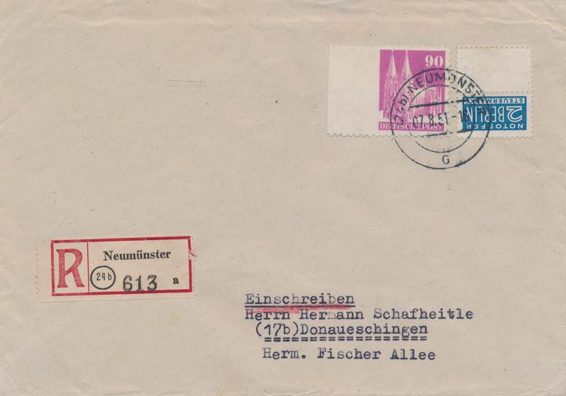 8(2), 12(2), 16( ) u. 3 St. 24 Pf. Schwarzaufdruck zusammen auf Eil-R-Bf. ab Berlin-Zehlendorf vom 3.9.48 nach Helmstedt. Trotz kl. Gebrauchsspuren sehr seltene FDC-Kombination! |