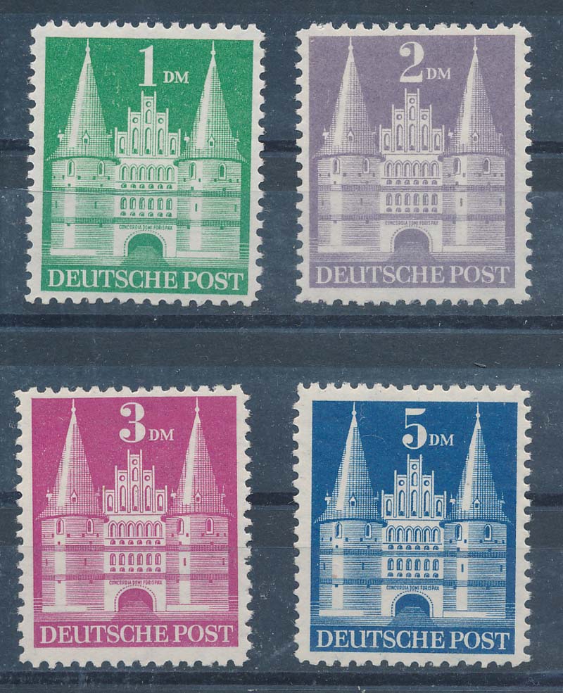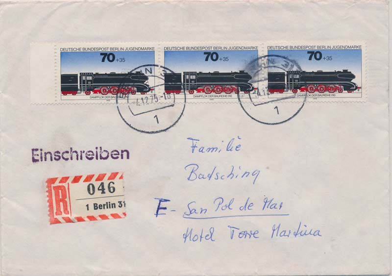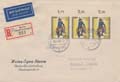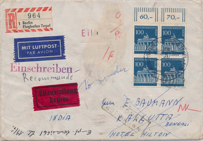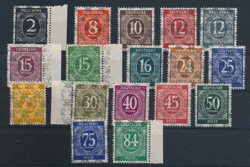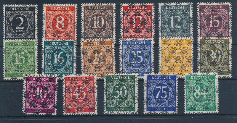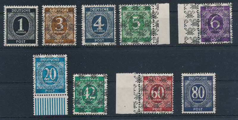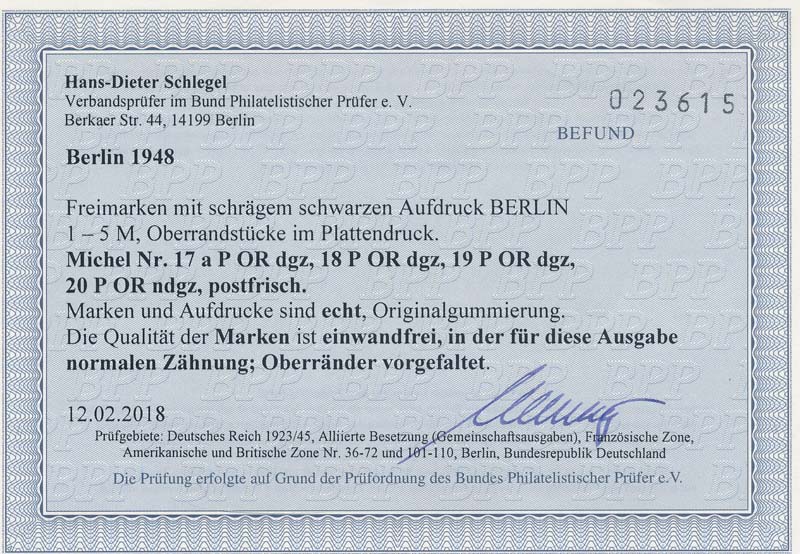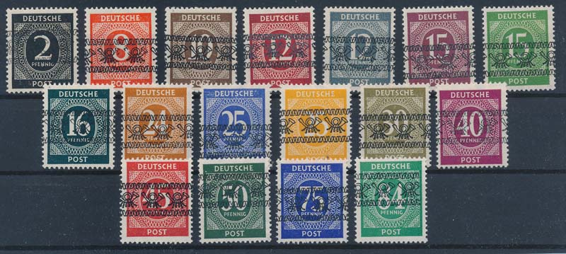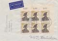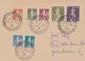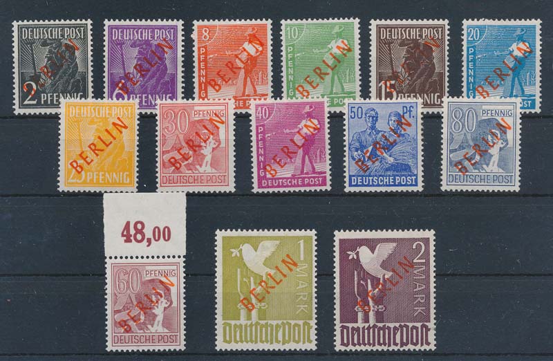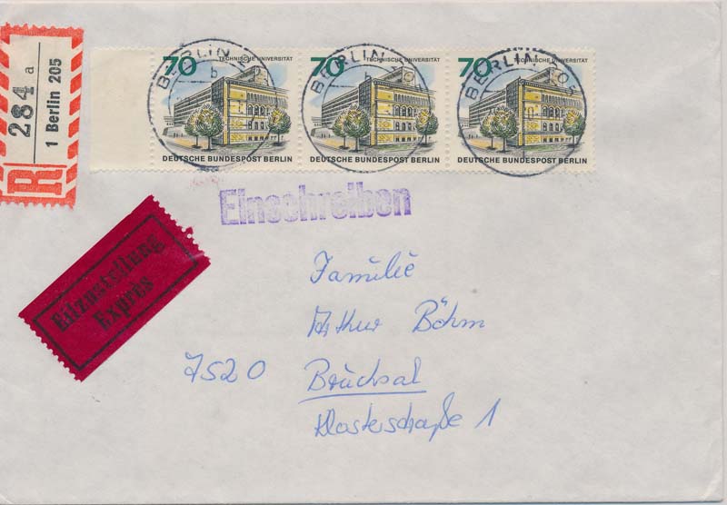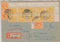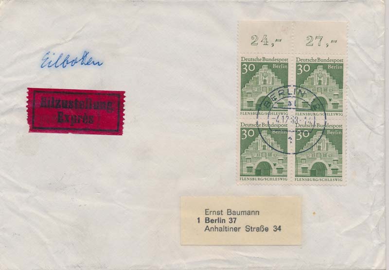 8(2), 12(2), 16( ) u. 3 St. 24 Pf. Schwarzaufdruck zusammen auf Eil-R-Bf. ab Berlin-Zehlendorf vom 3.9.48 nach Helmstedt. Trotz kl. Gebrauchsspuren sehr seltene FDC-Kombination! |