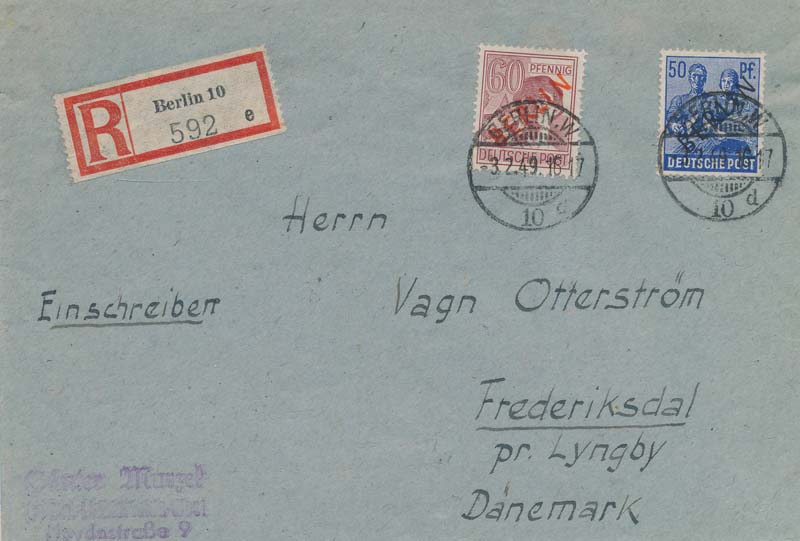 60 Pf. Luftpostbf. gebr. ab Berlin N65 vom 14.2.50 nach Dänemark |