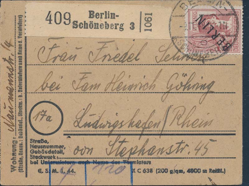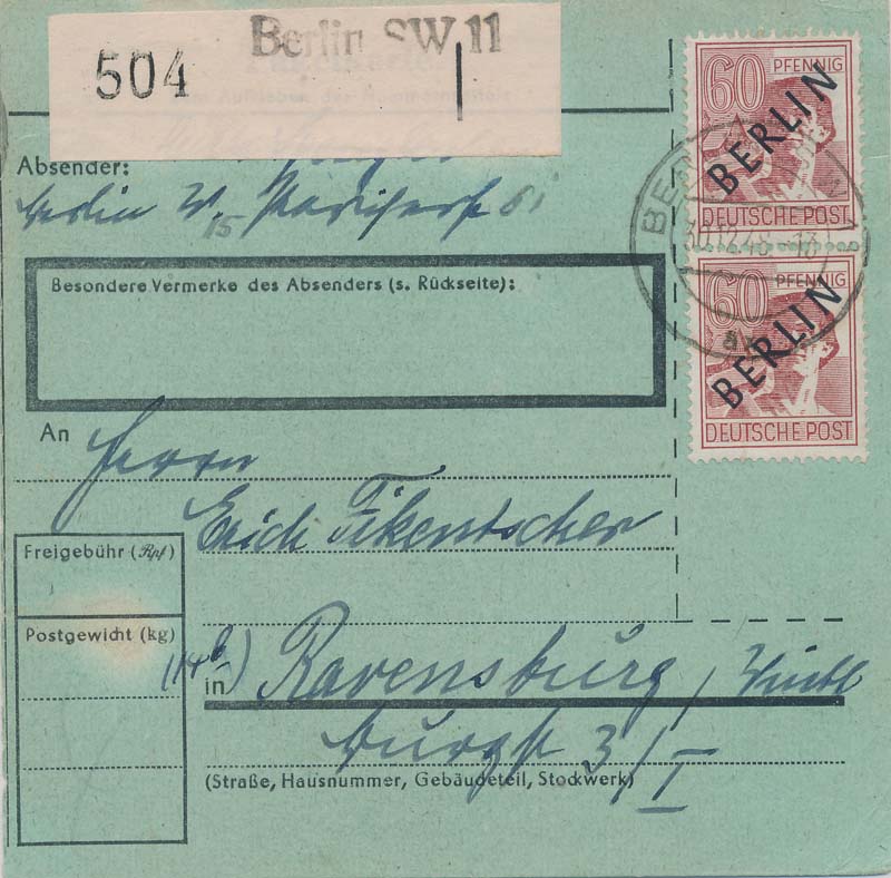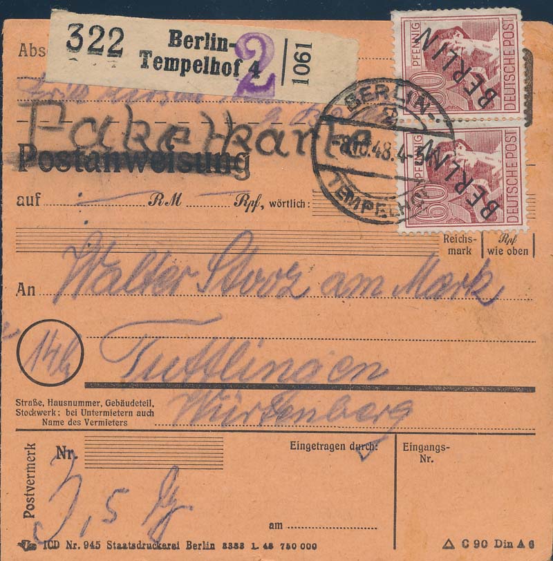 60 Pf. Arbeiter als MeF von 4 St. auf Bf. ab Berlin vom 25.6.48 nach Zittau |