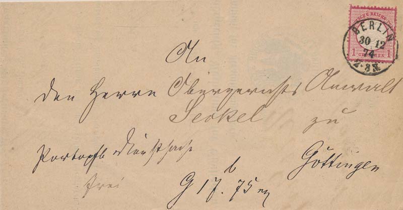 "BERLIN" K1 in Grotesk vom 30.12.74 glasklar auf Bf. mit DR 1 Gr. gr. Schild nach Göttingen KBHW 8b |