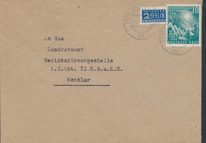 10 Pf. Bundestag als EF auf Ortsbf. von Wetzlar vom 4.10.49 |