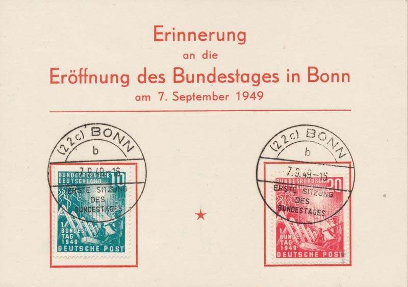 Bundestag kpl. auf So-Karte mit SST, dabei 20 Pf. mit Plattenfehler VII, im Michel ohne Bewertung! |