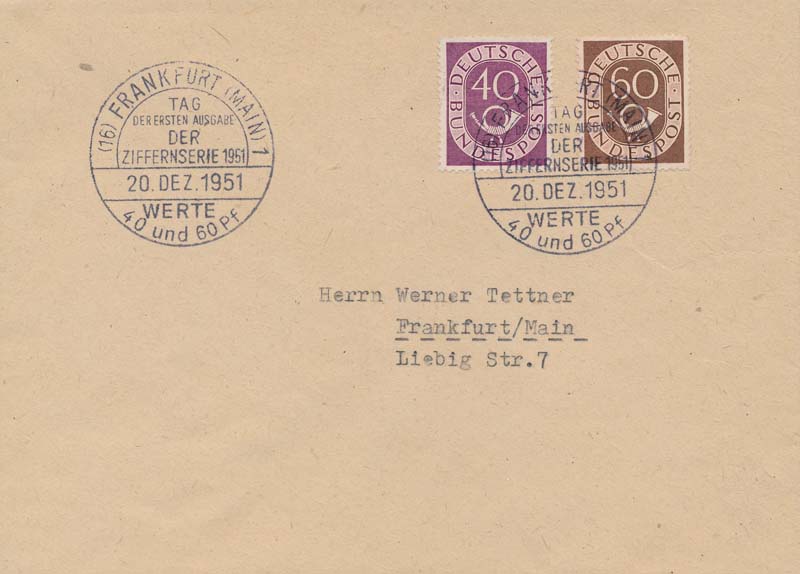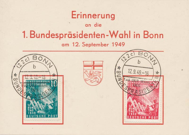 Bundestag kpl. auf FDC-Karte mit ESST, dabei 20 Pf. mit Plattenfehler IV |