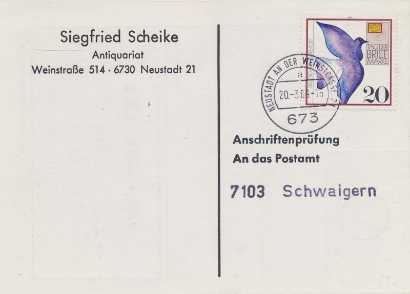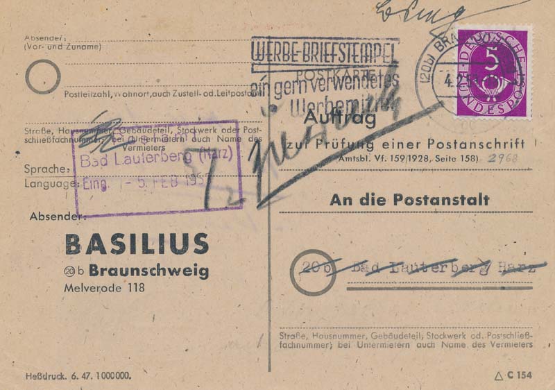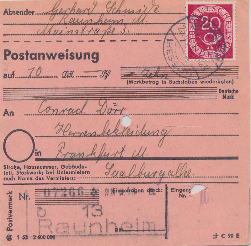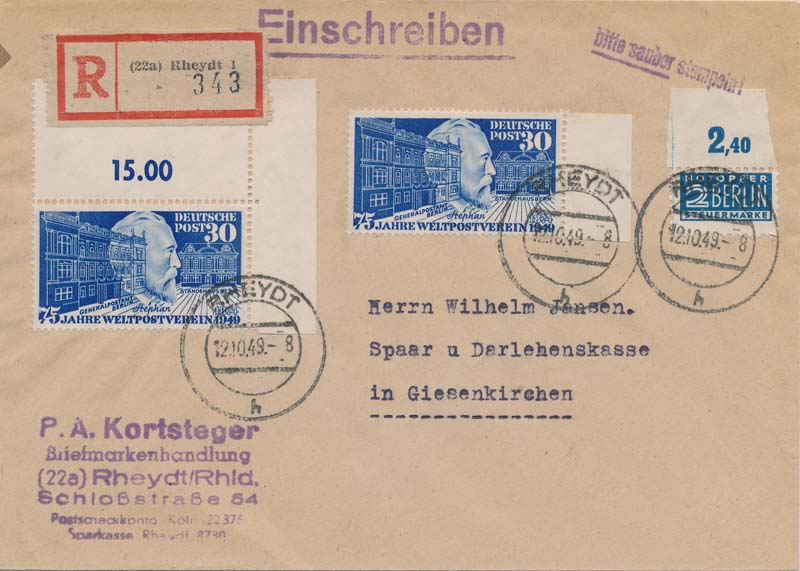 Stephan als MeF auf R-Bf. ab Rheydt vom 12.10.49 nach Giesenkirchen, dabei 1 mal r. obere Bogenecke |