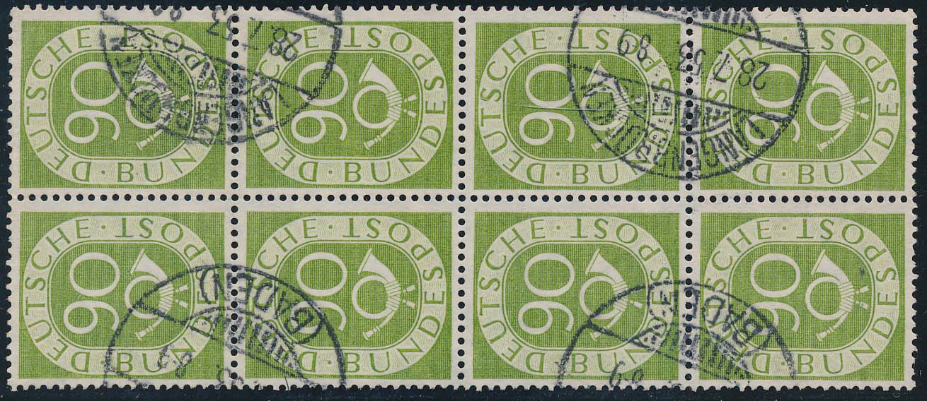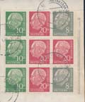 8+20+8 Pf. Heuss WZ "Y" Typ I mit weiteren 3 20 Pf. Heuss als Blockstück ideal gestpl. "BERLIN NW 108" LUXUS! Fotoattest Schlegel D. "echt u. einwandfrei" Der einzige gestpl. Heuss-ZD ohne Preis im Michel! |