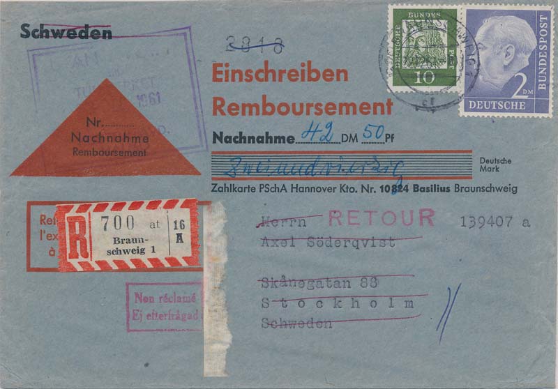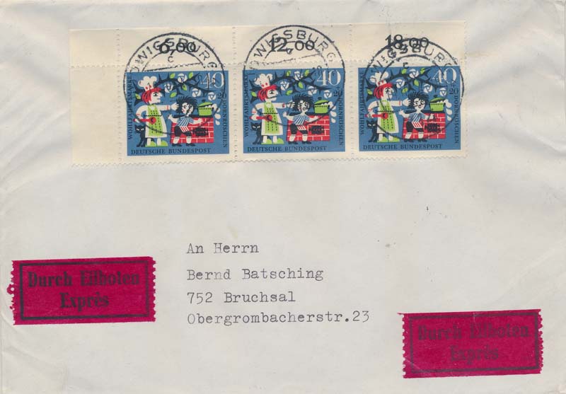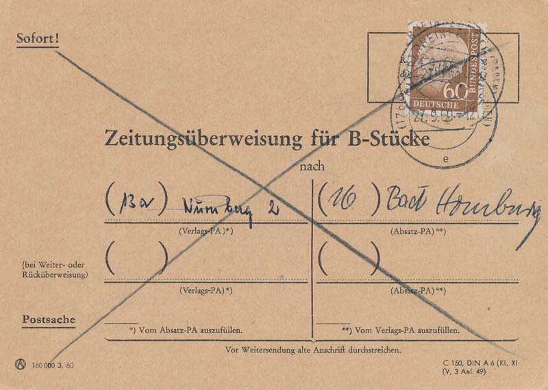 8+20+8 Pf. Heuss Wz Y Typ I im senkr. Streifen mit Zusatzfrankatur auf Orts-R-Doppelbf. (1 Pf. zuviel) von München vom 17.9.64 Fotoattest Schlegel D. Im Michel der einzige ZD ohne Bewertung! |