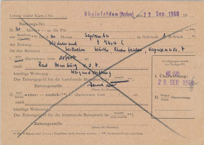 Stephan im als MeF auf R-Bf. ab Bielefeld vom 10.10.49 (2. Tag!) nach Donaueschingen |