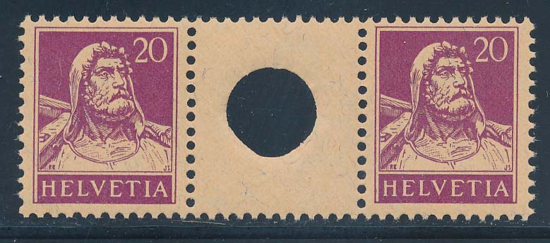 20+Z+20 C. Tell im waager. Streifen, Loch im ZW-Steg Typ "A" postfrisch Pracht ungefaltet |
