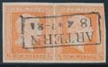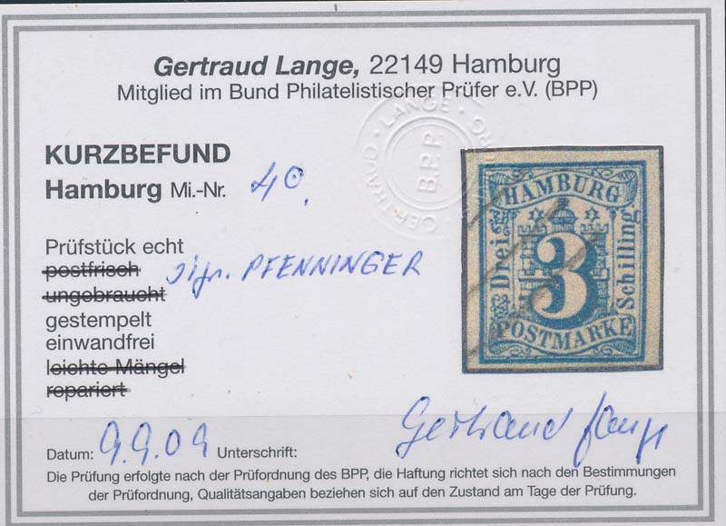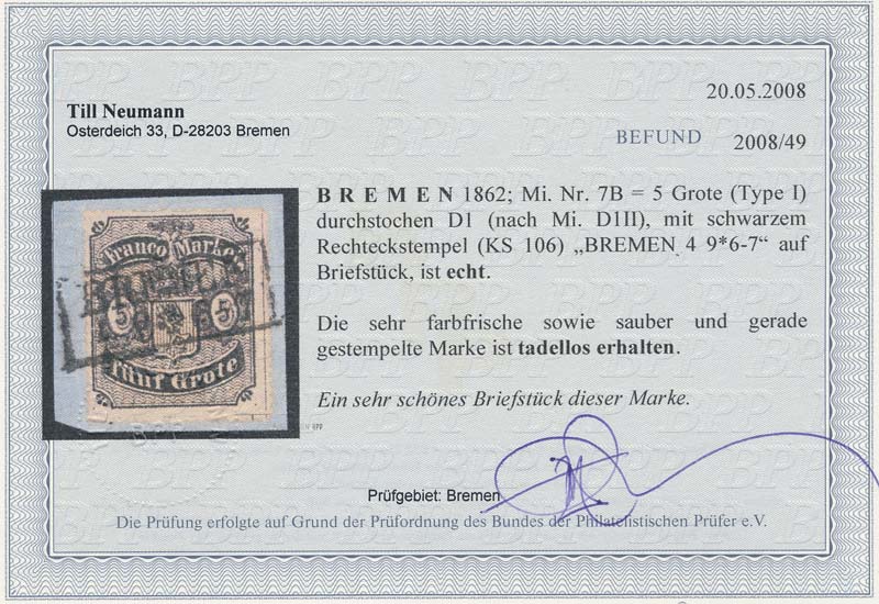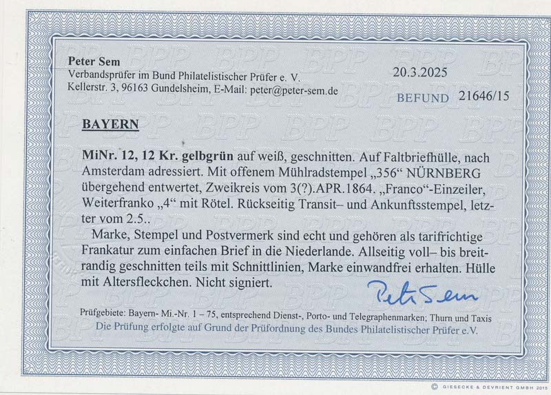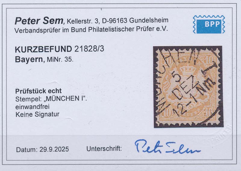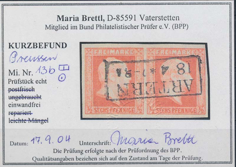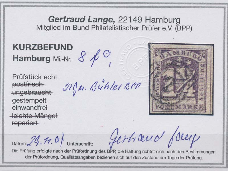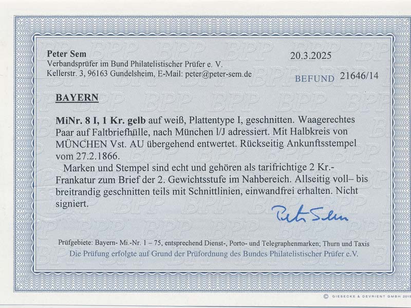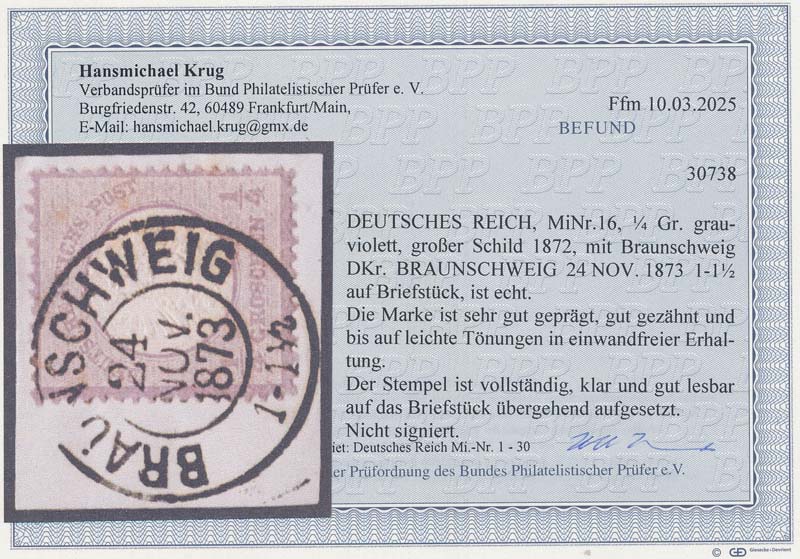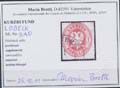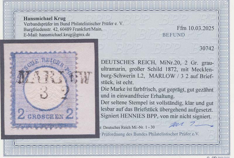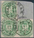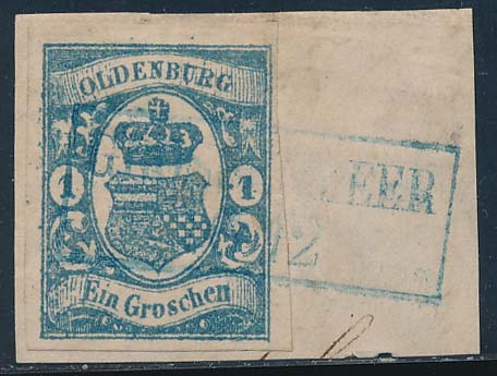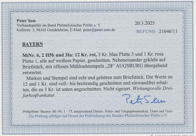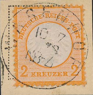 "SCHWARZACH" badischer Agentur K2 ideal auf Bf.-St. mit DR 7 Kr. gr. Schild (mit kl. r. Bogenrand) neuer Befund Krug "echt u. bis auf 1 kürzeren Zahn in guter Erhaltung" |