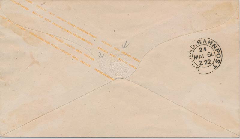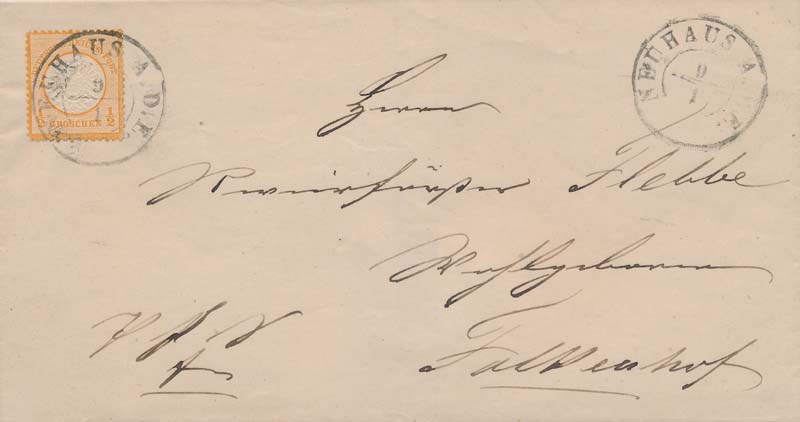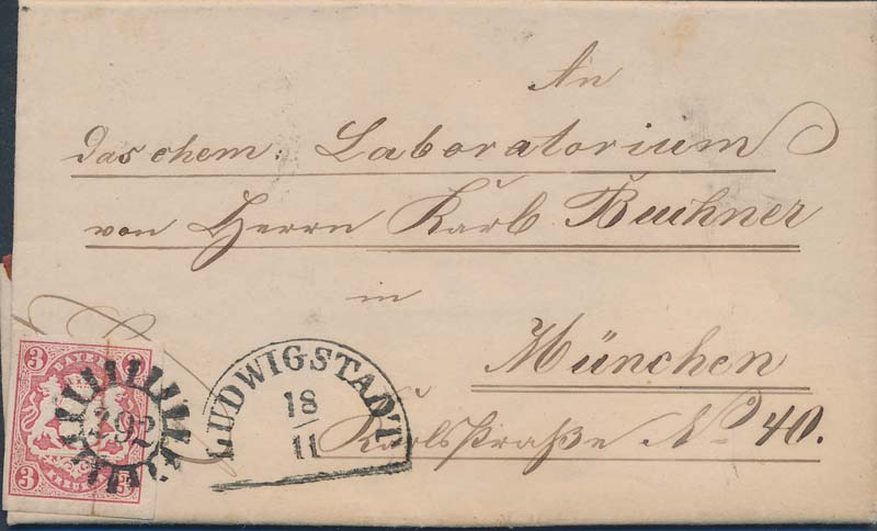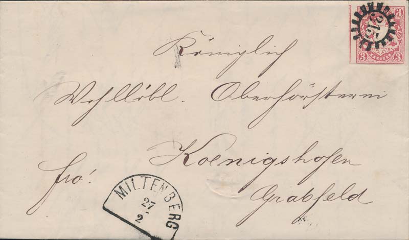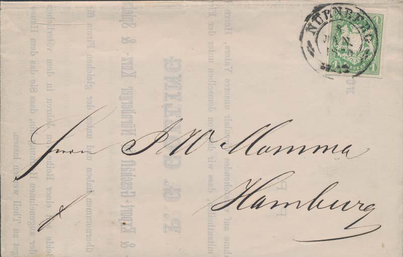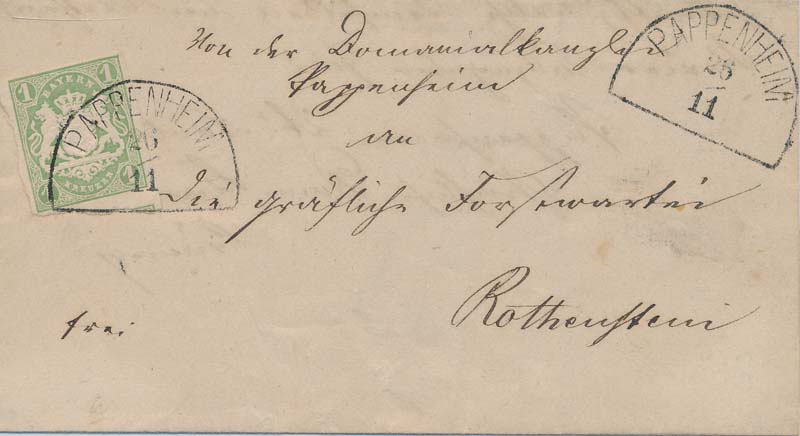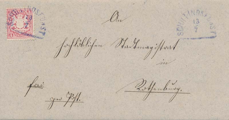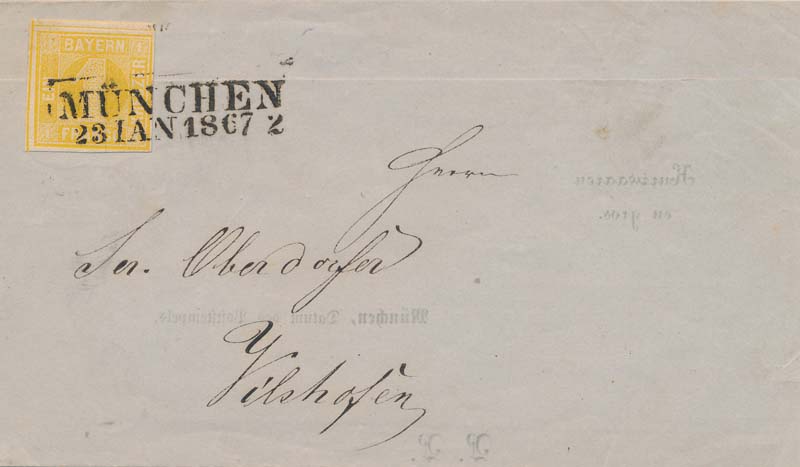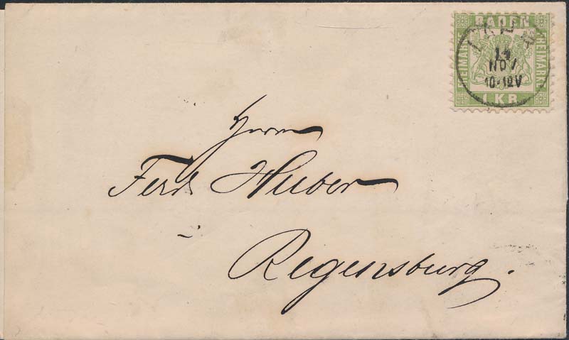 1 Kr. Wappen Ausg. 1868 als EF auf Bf.-Hülle ab Lahr (K1) nach Regensburg |