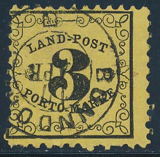 3 Kr. Ziffer "y"-Papier mit fast zentrischen K2 "BONNDO(RF)" gepr. Seeger |