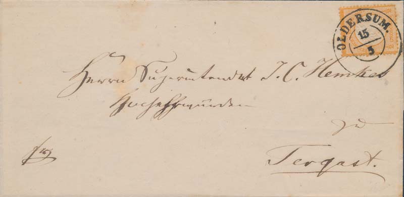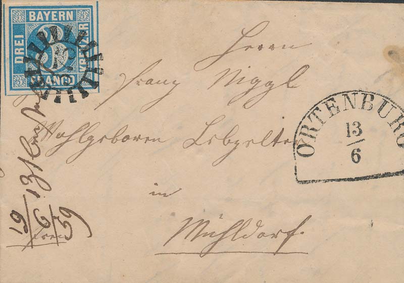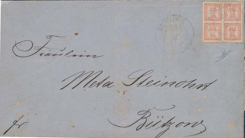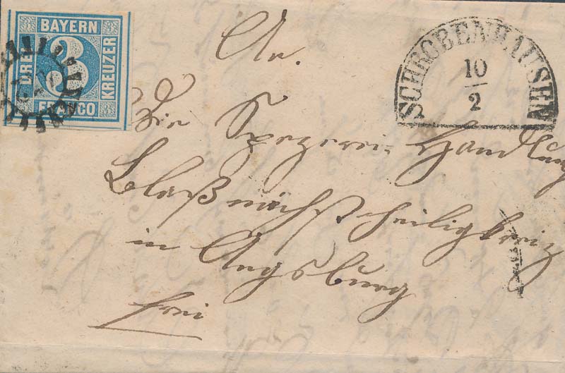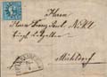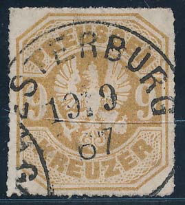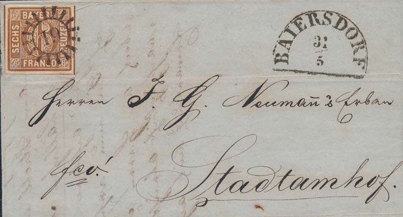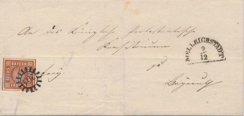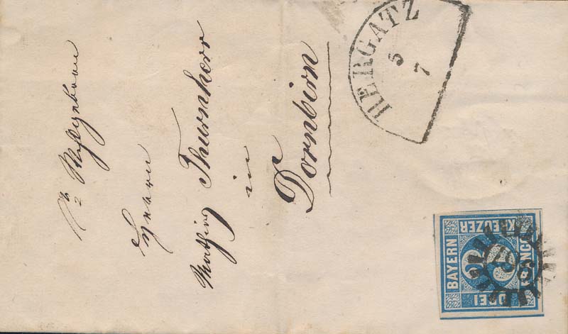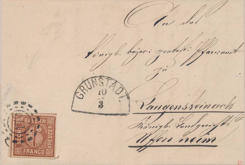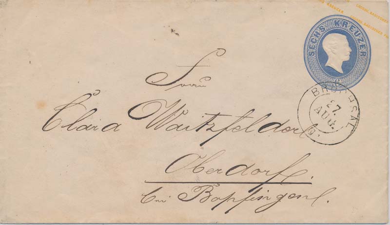 6 Kr. Ausg. 1863 gebr. ab Bruchsal (K2) nach Oberdorf |