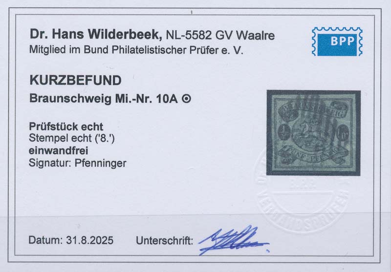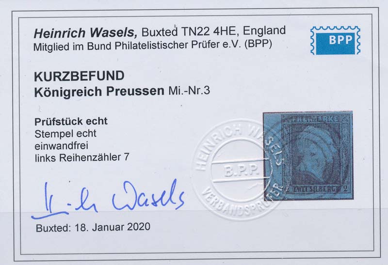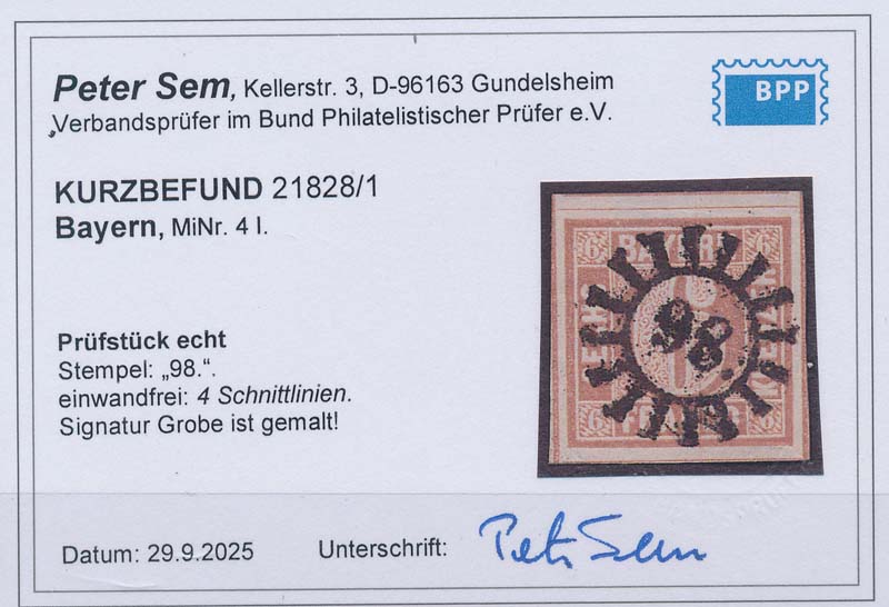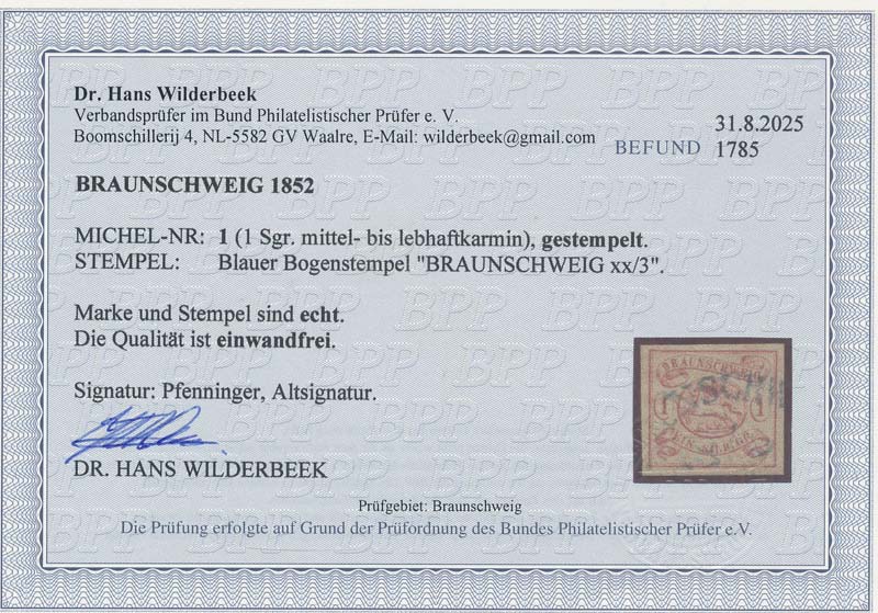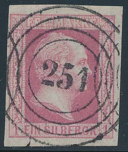 1 Kr. Ziffer Ausg. 1851 "b"-Farbe allseits voll bis breitrandig, lediglich unten r. leichter Randlinienschnitt gepr. Seeger |