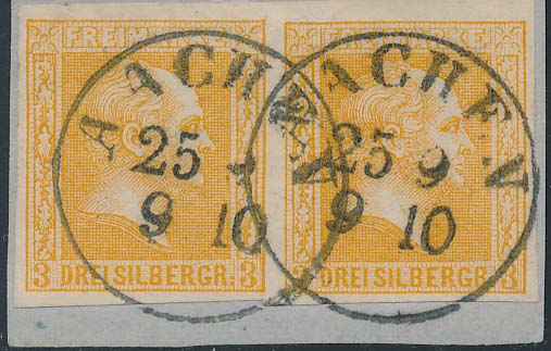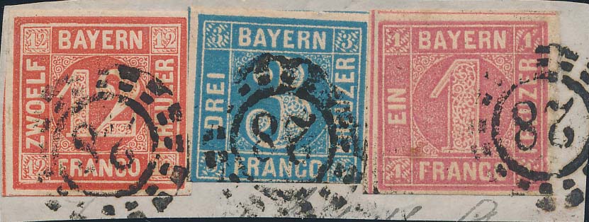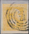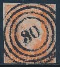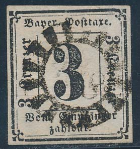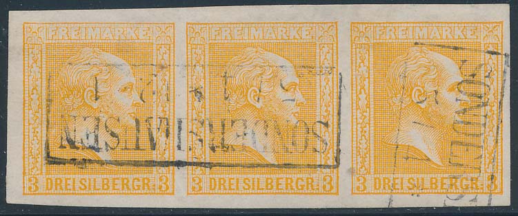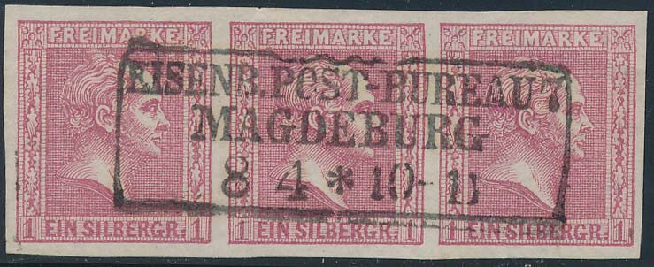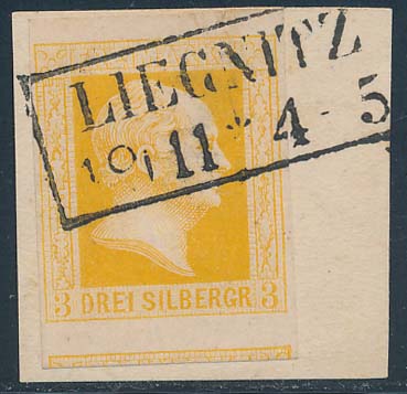 "1118" zentrisch glasklar auf voll bis breitrandiger (Teile von 3 Nachbarmarken!)3 Sgr. Ausg. 1850 |